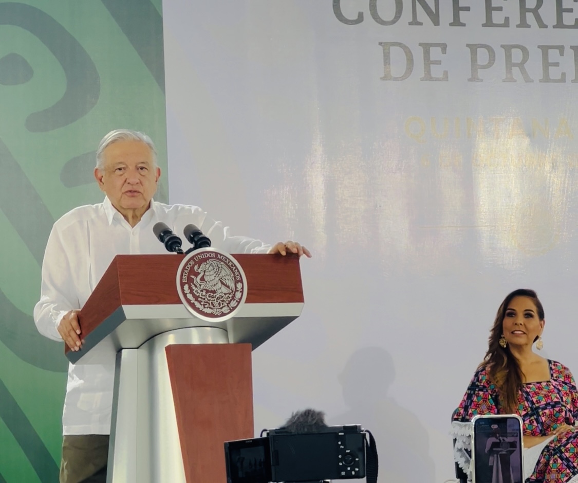 Desde Cancún, el presidente López Obrador informa que hoy realizará visitas de evaluación al tramo 5 y 4 que corre de Cancún a Yucatán del #trenMaya.
