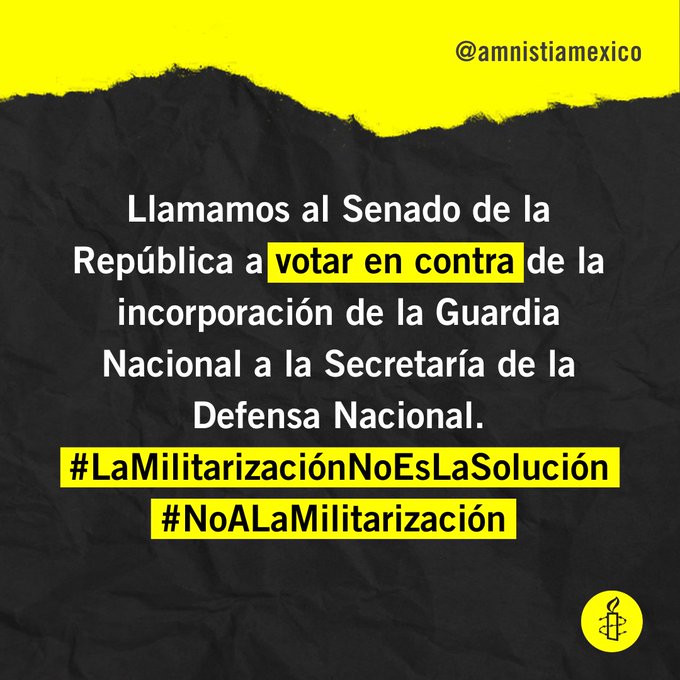 Amnistía Internacional llamó al Senado a detener la reforma constitucional sobre la Guardia Nacional, impulsada por el presidente Andrés Manuel López Obrador.