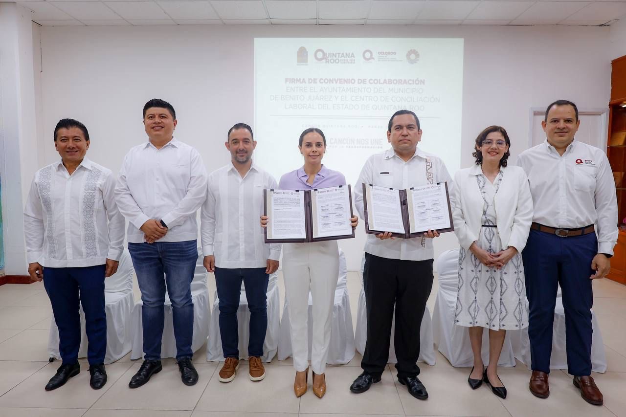A su vez, el director general del Centro de Conciliación Laboral del Estado de Quintana Roo, Iván Andrés Figueroa Reyna, agradeció a la Presidenta Municipal su compromiso y disposición para sumar esfuerzos en la construcción de una sociedad más justa, donde prevalezca el diálogo para dar fin a discrepancias, lo que ayudará también a fortalecer la confianza en las instituciones.