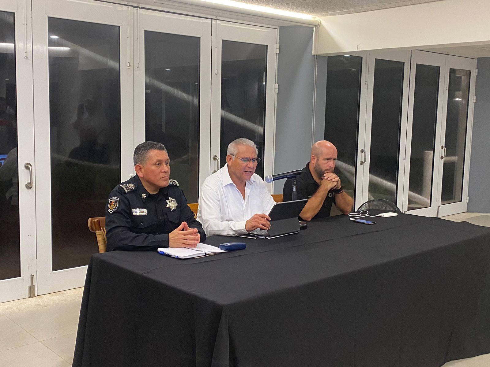 ZC/ Puerto Aventuras.- Integrantes de la Mesa de Seguridad y Justicia sostuvieron un encuentro en un hotel de Puerto Aventuras, en donde detallaron avances con integrantes de la iniciativa privada, incluida la instalación de 57 puntos de vigilancia en Solidaridad, que estarán en operación a partir de octubre.