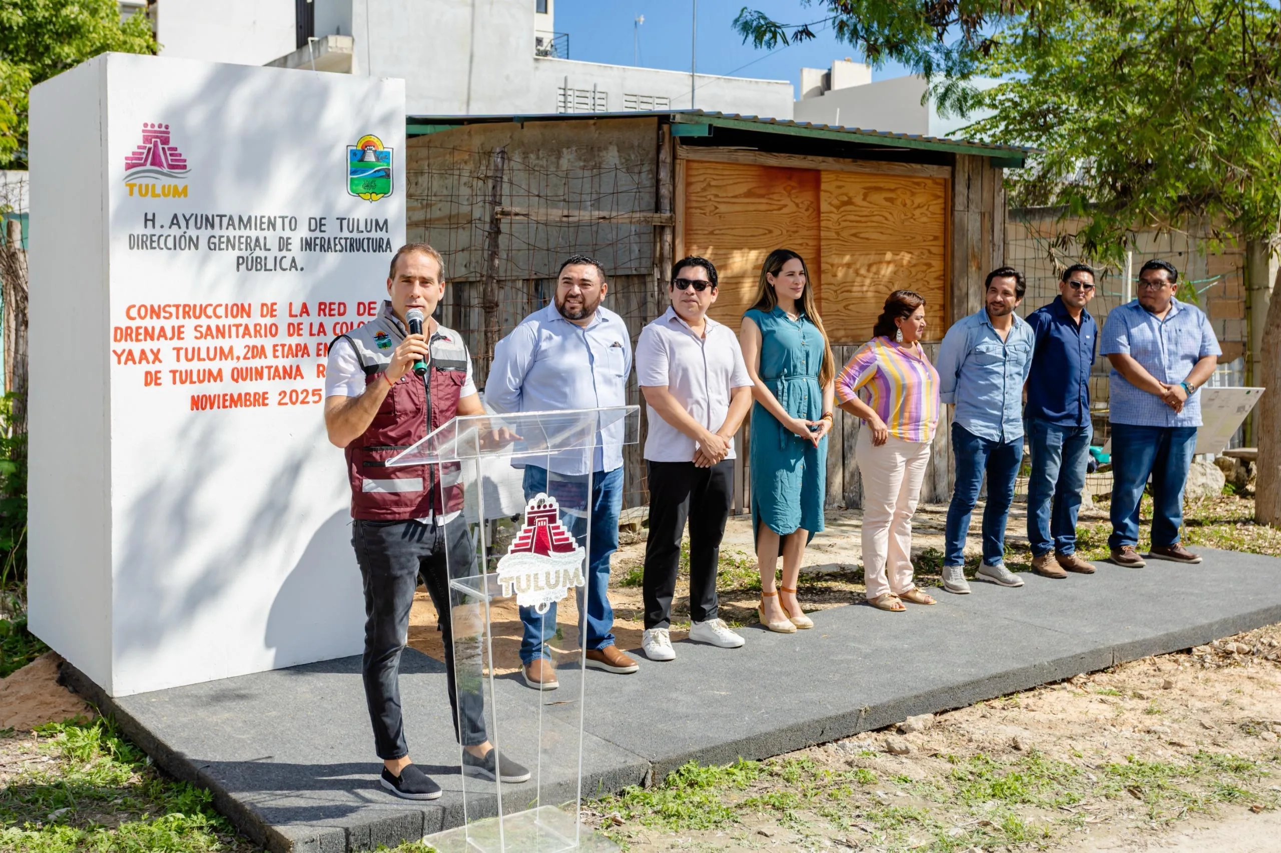 Tulum, Quintana Roo a 21 de noviembre de 2025.- Continúa el fortalecimiento de los servicios de infraestructura en Tulum con el banderazo de arranque de obra de la red de drenaje sanitario de la colonia Yaáx Tulum, que realizó el presidente municipal Diego Castañón Trejo.