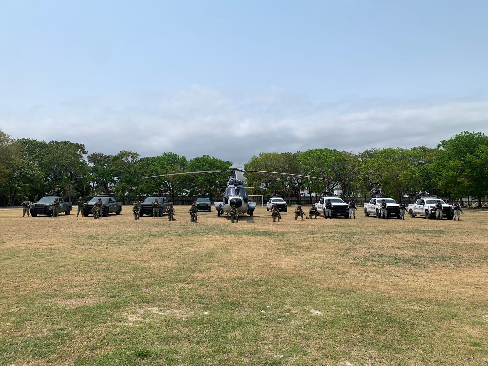De acuerdo a este comunicado, “arribaron 200 elementos del Ejército Mexicano y Guardia Nacional en vehículos artillados, así como un helicóptero EC225 de la Fuerza Aérea Mexicana, para realizar operaciones en coordinación con las autoridades locales, a fin de inhibir las actividades de la delincuencia organizada y atender la problemática de seguridad en el municipio de Othón Pompeyo Blanco, Q. Roo.”