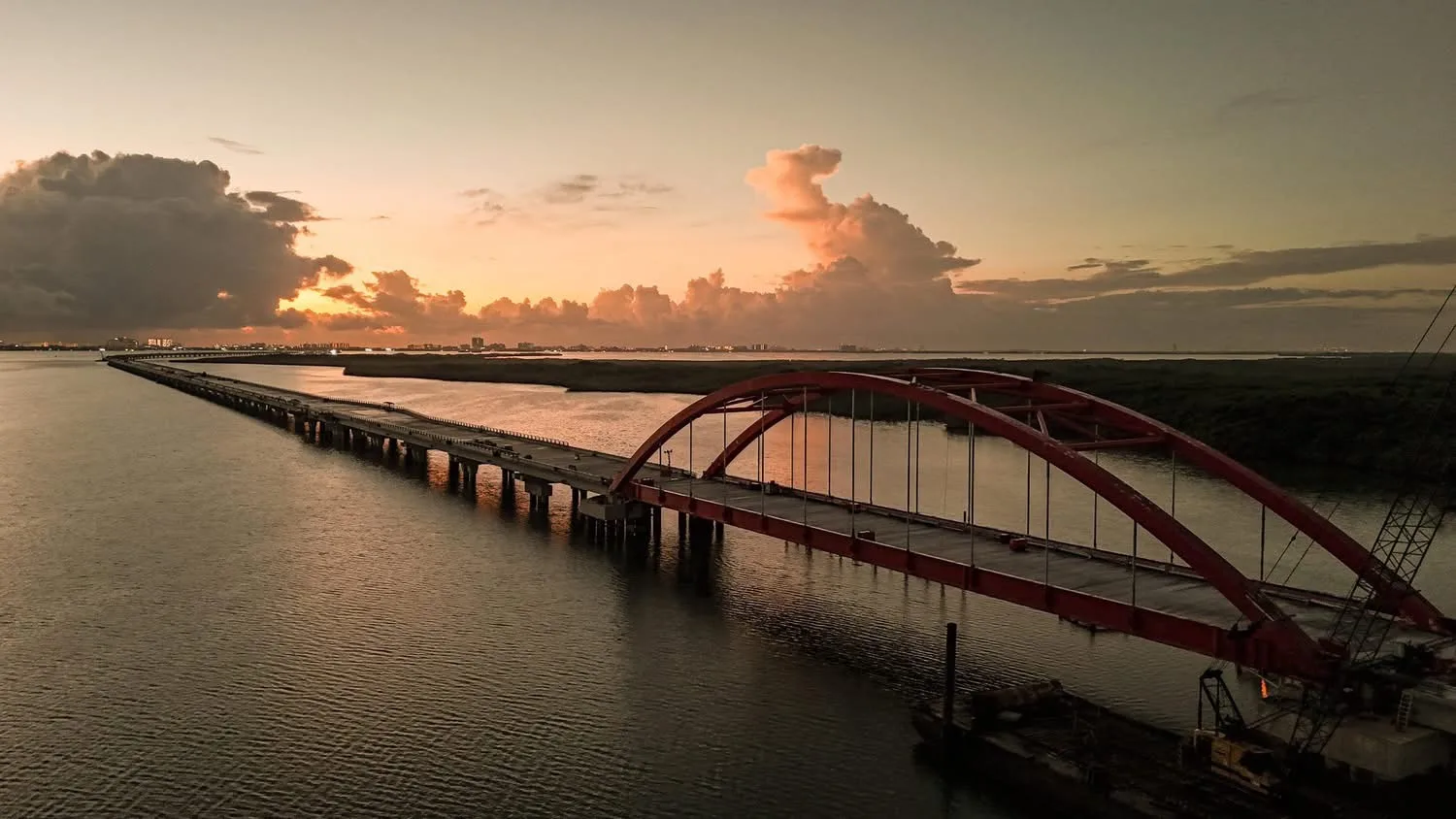 Con 11.2 kilómetros de longitud y un arco metálico de 103 metros, el puente —actualmente el más grande en construcción en América Latina— será libre de peaje y ofrecerá vistas privilegiadas a la laguna Nichupté y a las zonas de manglar que atraviesa.