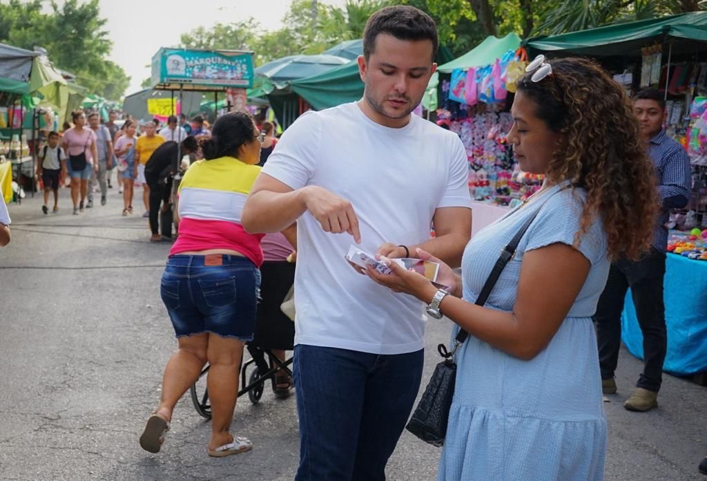Cancún, Quintana Roo, 13 julio 2023.– En el Tianguis de Paraíso Maya, mujeres cancunenses destacaron la seguridad alimentaria que tienen con el Programa del Bienestar “Mujer es Vida” que impulsa la Gobernadora Mara Lezama, a través del cual reciben de forma directa y gratuita, un apoyo complementario de mil 200 pesos y un paquete alimentario “Comemos Tod@s”, comentó el Secretario de Bienestar, Pablo Bustamante Beltrán.