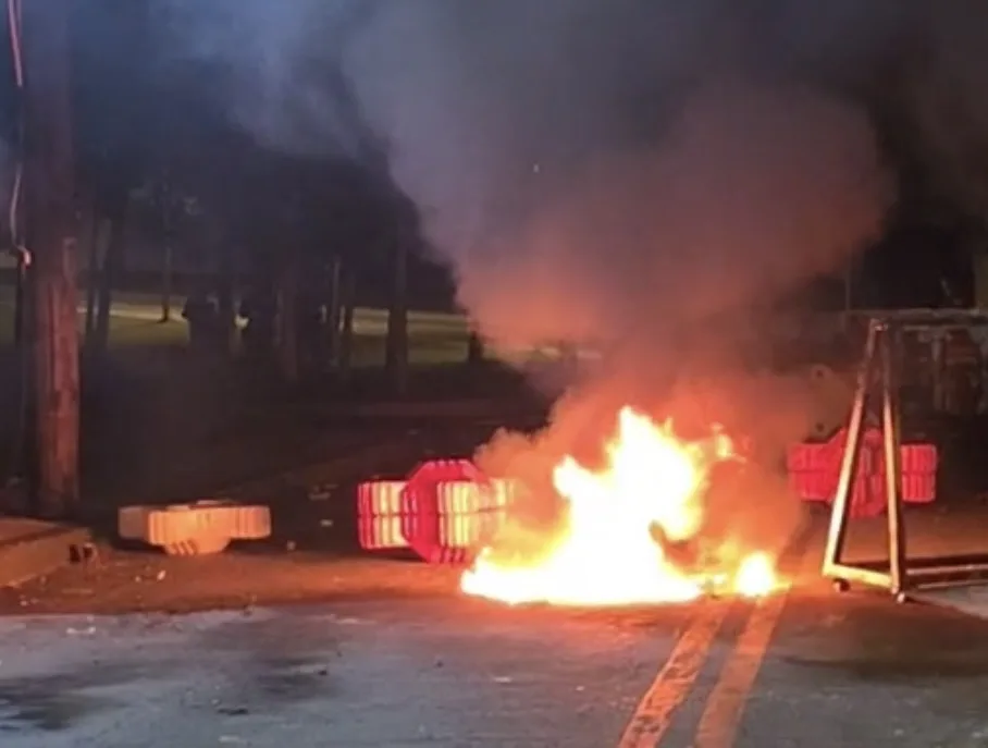 Los manifestantes lanzaron piedras frente a las instalaciones de la GM hasta que uno de los elementos lanzó disparos para dispersar las protestas.