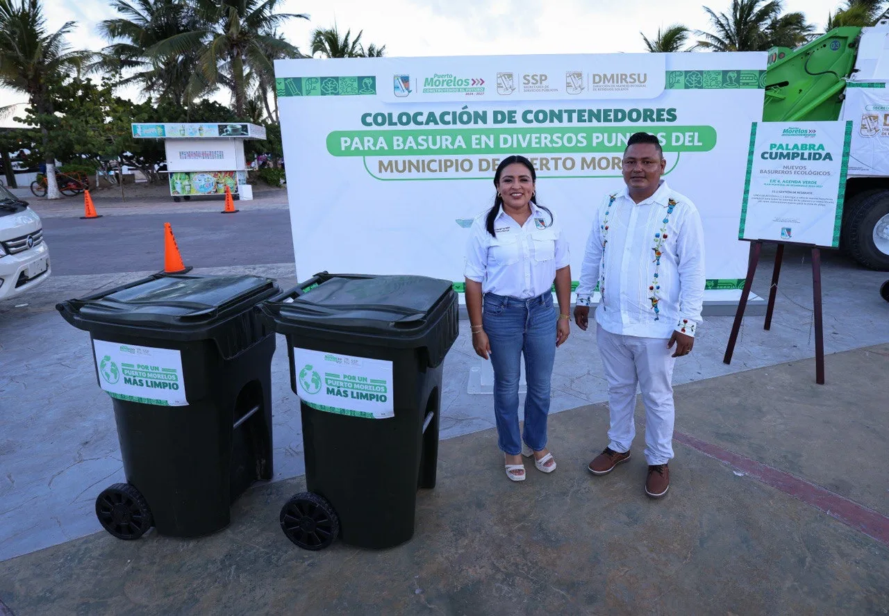 Se trata, explicó la presidenta, de un proyecto que nació con la administración, dentro de las 50 acciones prioritarias y en el marco del Eje 4, Agenda Verde del Plan Municipal de Desarrollo 2024-2027 bajo la Estrategia 11.1 de Gestión de Residuos, para entregar y colocar nuevos basureros ecológicos en todas las colonias de la cabecera municipal, Delegación de Leona Vicario y zona turística, para mantener una imagen limpia de cada rincón de Puerto Morelos.