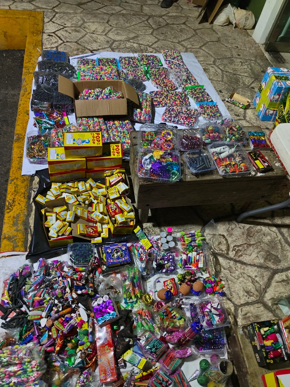Protección Civil, Seguridad Ciudadana y la Dirección de Comercio, en operativo conjunto decomisaron 192 kilogramos de pirotecnia, asegurados en las instalaciones correspondientes para su resguardo y disposición final.