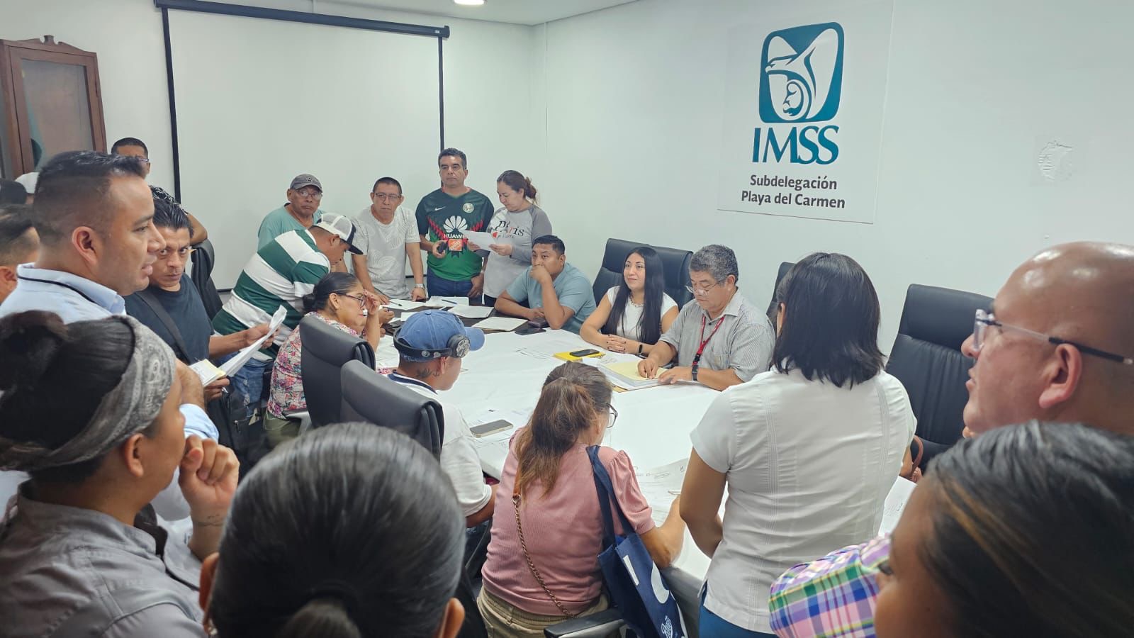 Playa del Carmen.- Representantes sindicales de la Confederación Revolucionaria de Obreros y Campesinos (CROC) y trabajadores del hotel Parnassus de la Zona Hotelera de Cancún acudieron este día a la subdelegación del IMSS en esta ciudad, para denunciar la falta de pago de cuotas patronales, e incluso el intento de “engañar” a esta autoridad, al dar de baja a personas que aún laboran en este lugar.