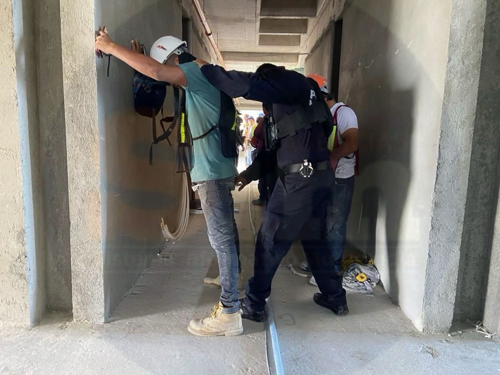 El operativo de los elementos policíacos tardó al menos una hora; lapso en que fueron revisados al menos 80 trabajadores de esta obra.
