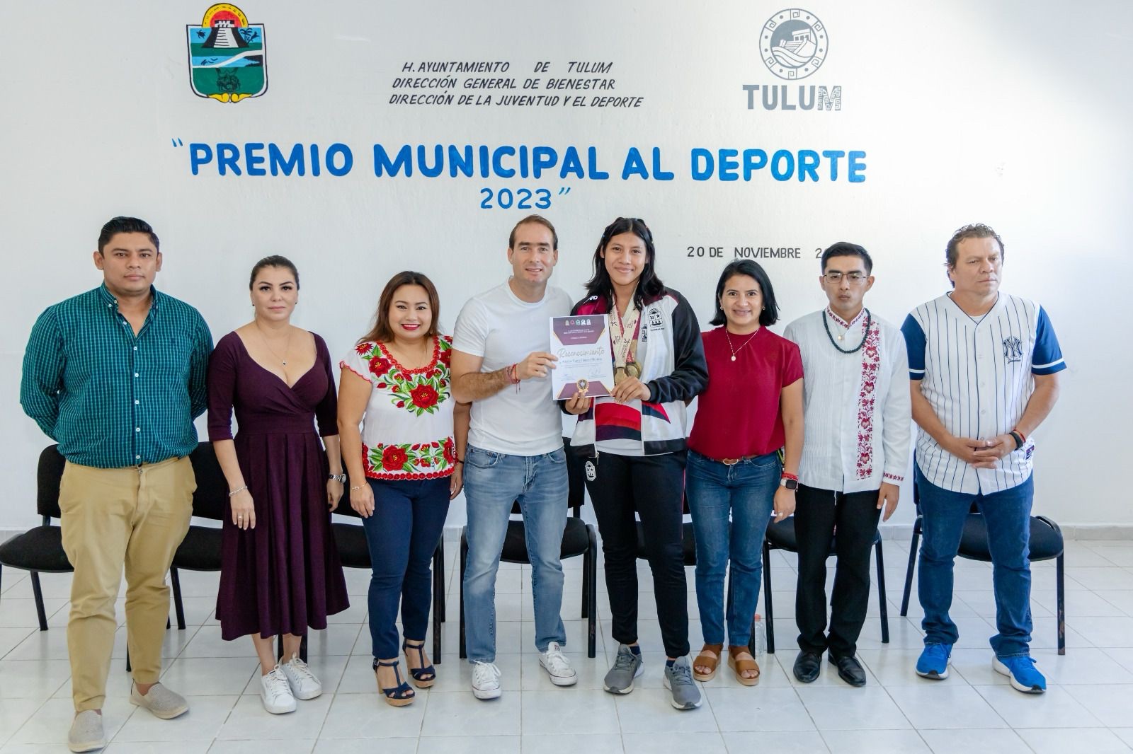 Durante la entrega del “premio municipal al deporte 2023”, se condecoró a los atletas Levi Kalani Alexander Fogo Esquivel, Ariadna Chávez Medina, Naomi Cardona Salazar, Alexander Escamilla Canul, Mariela Pech Reyes, Abraham Rojas Quintana, Ileana Poot Navarrete, Rodrigo López Valadez y a la maestra Martha Domínguez Ramos.