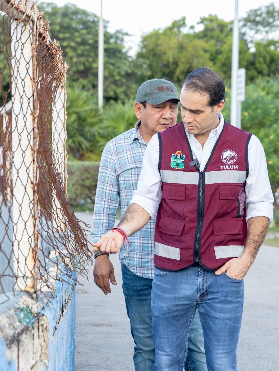El Presidente Municipal, Diego Castañón Trejo acompañado del director de Seguimiento de Obra Pública, Hipólito Tuz Chi y el director de la Juventud y el Deporte, Rodrigo López Hernández, recorrieron la obra con avance del 50 por ciento, de la cual el edil destacó se trata de uno de sus principales logros como administración “Tulum se Transforma porque cada peso que ingresa a las arcas, se aplica de manera responsable para el bienestar de cada Tulumnense”, señaló.