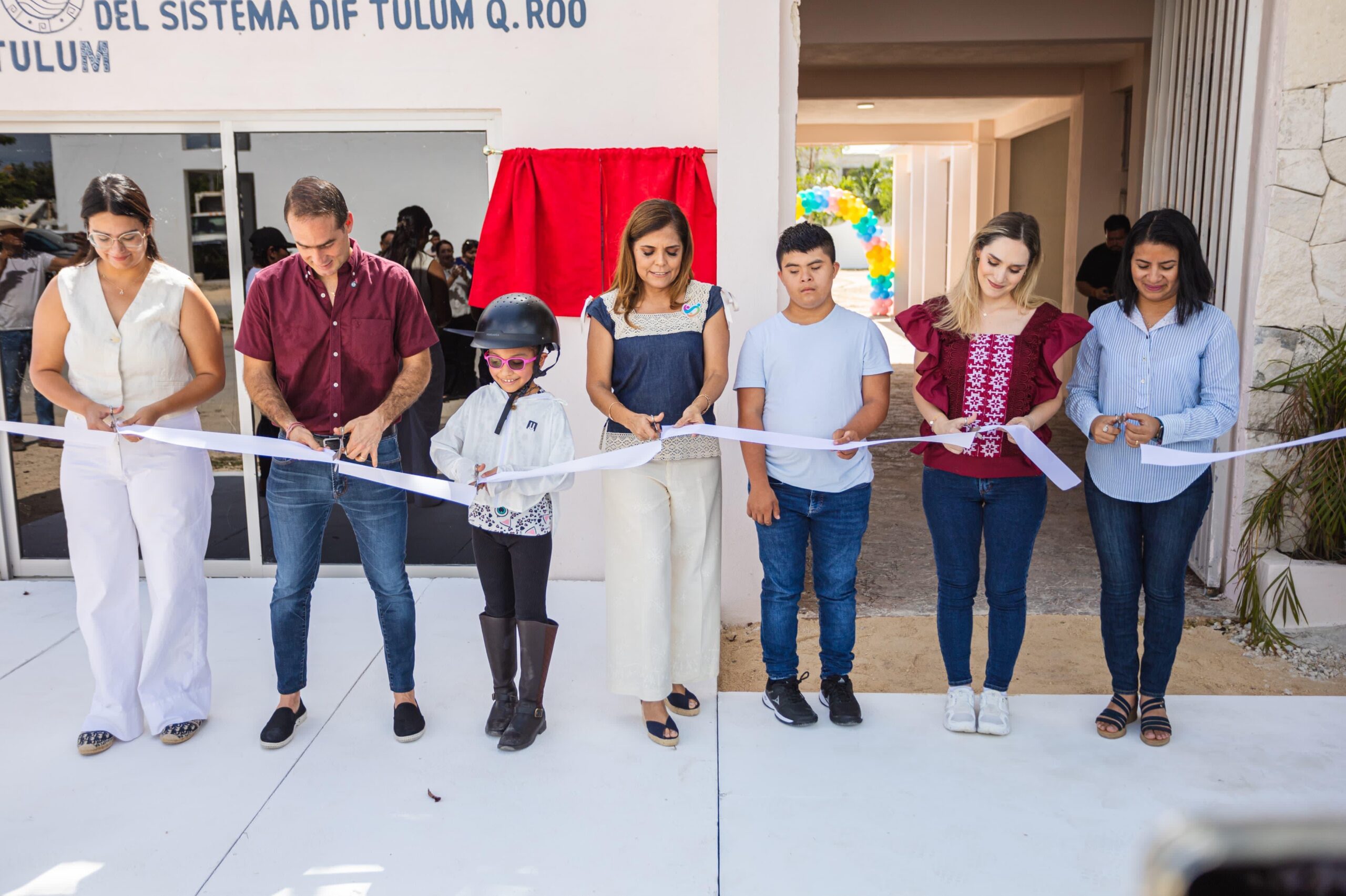 Tulum, 19 de agosto del 2024.- El Presidente Municipal de Tulum, Diego Castañón Trejo acompañó a la Presidenta del DIF-Estatal, Verónica Lezama y a la presidenta del DIF-Tulum, Paulina Quiroga de Castañón, al corte del listón de la remodelación del Centro de Equinoterapia, un espacio para el desarrollo motriz de la niñez y familias.