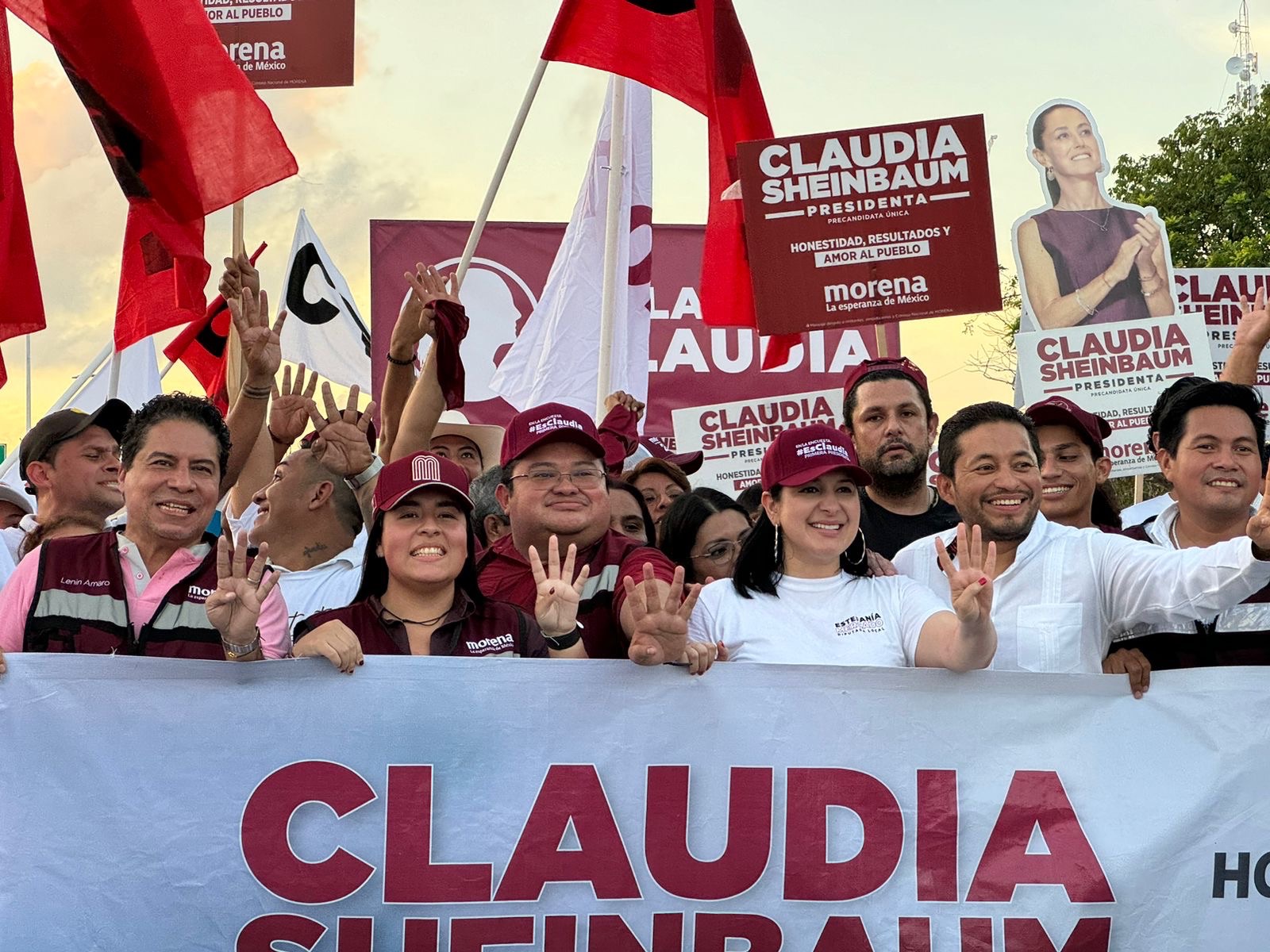 Los morenistas marcharon desde el segundo parque de Villas del Sol y por parte de la avenida CTM, enarbolando una lona con el nombre e imagen de Claudia Sheinbaum y dando gritos de «Morena».