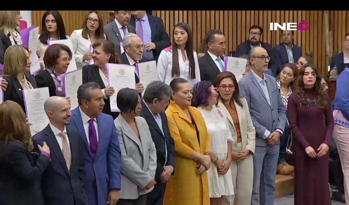 16 de junio 2025.- El Consejo General del Instituto Nacional Electoral (INE) realizó el protocolo de entrega de las constancias de mayoría a las candidaturas que resultaron ganadoras, conforme a los acuerdos sobre los cómputos, sumatoria, declaración de validez de la elección y asignación a las personas que obtuvieron el mayor número de votos, por el principio de paridad de género y que ocuparán los cargos de magistradas y magistrados del Tribunal de Disciplina Judicial (TDJ).