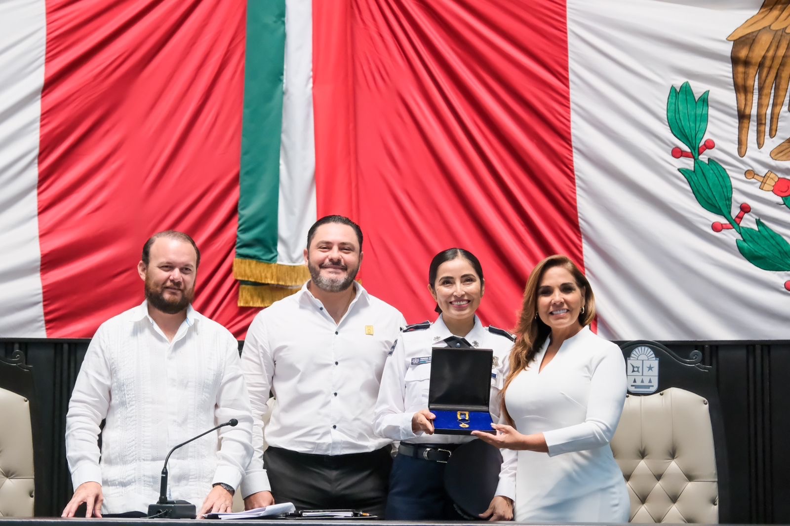 En Sesión Solemne del Congreso del Estado, con la presencia del diputado Luis Humberto Aldana Navarro, presidente de la Junta de Gobierno y Coordinación Política del Congreso, y del magistrado Heyden José Cebada Rivas, presidente del Poder Judicial, la gobernadora Mara Lezama reconoció la valentía, el compromiso, pero sobre todo la voluntad de actuar de los elementos galardonados.