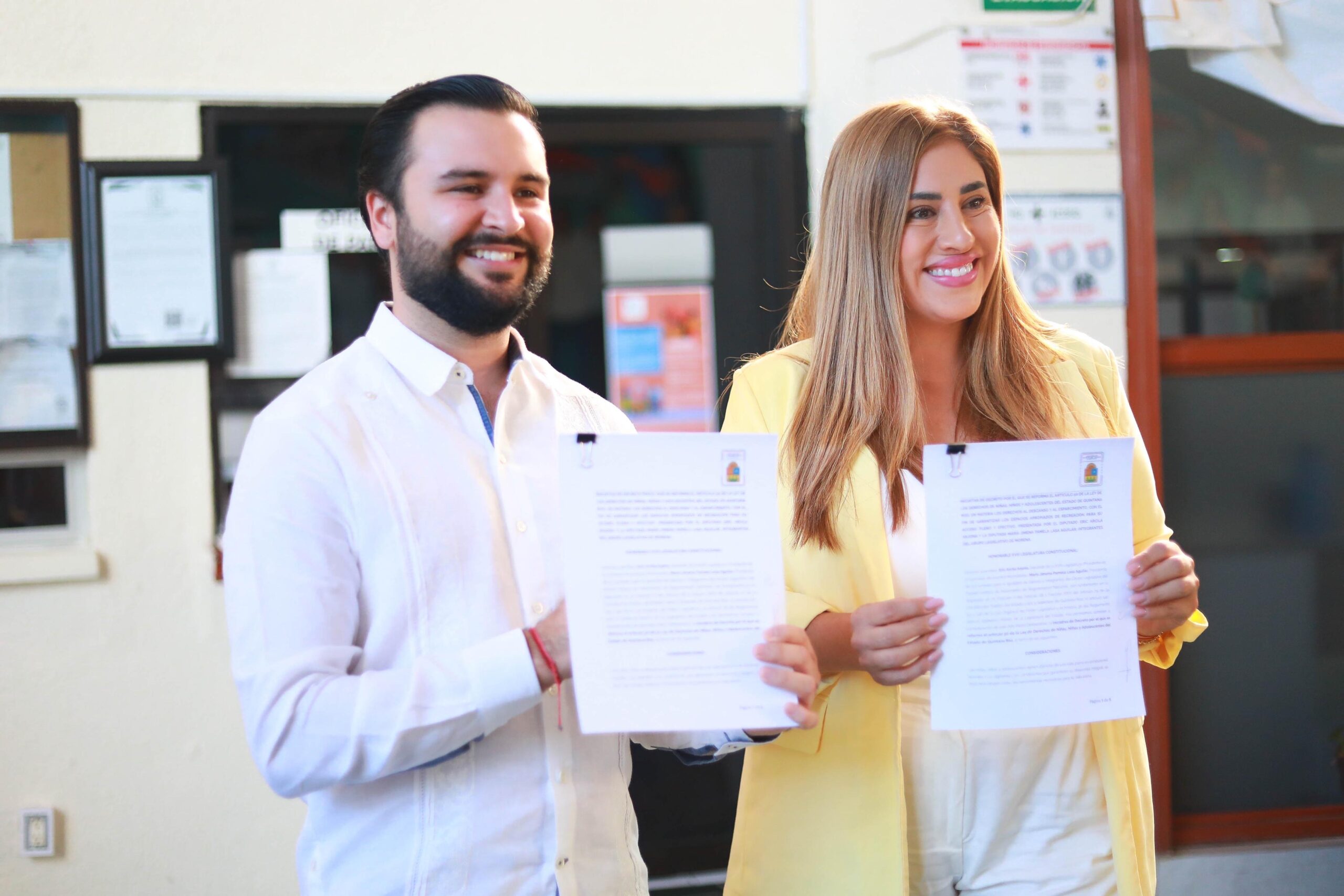 Chetumal, Q.R.; 22 de noviembre de 2024.- Con el objetivo de que el gobierno y los municipios garanticen espacios dignos, seguros y apropiados para el esparcimiento y recreación de las niñas, los niños y adolescentes quintanarroenses, los diputados por Morena: Eric Arcila Arjona y Jimena Lasa Aguilar, presentaron una iniciativa ante la XVIII Legislatura del Congreso del Estado, para reformar la Ley de Niñas, Niños y Adolescente de Quintana Roo.