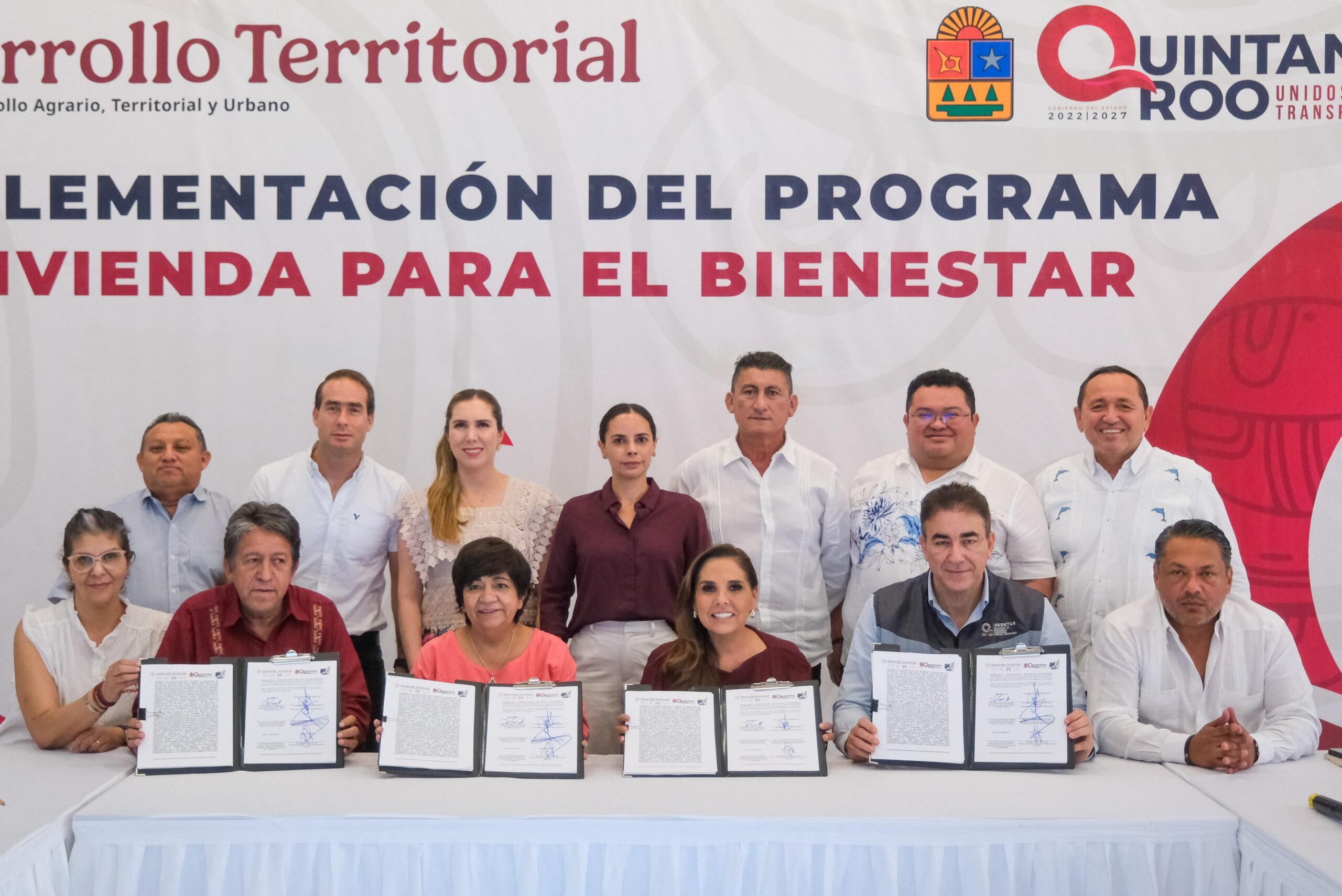 Cancún.- La gobernadora Mara Lezama Espinosa y la secretaria de la SEDATU, Edna Elena Vega Rangel, firmaron la implementación del Programa de Vivienda para el Bienestar en Quintana Roo que tiene una meta, para este año, de 2 mil 600 viviendas.