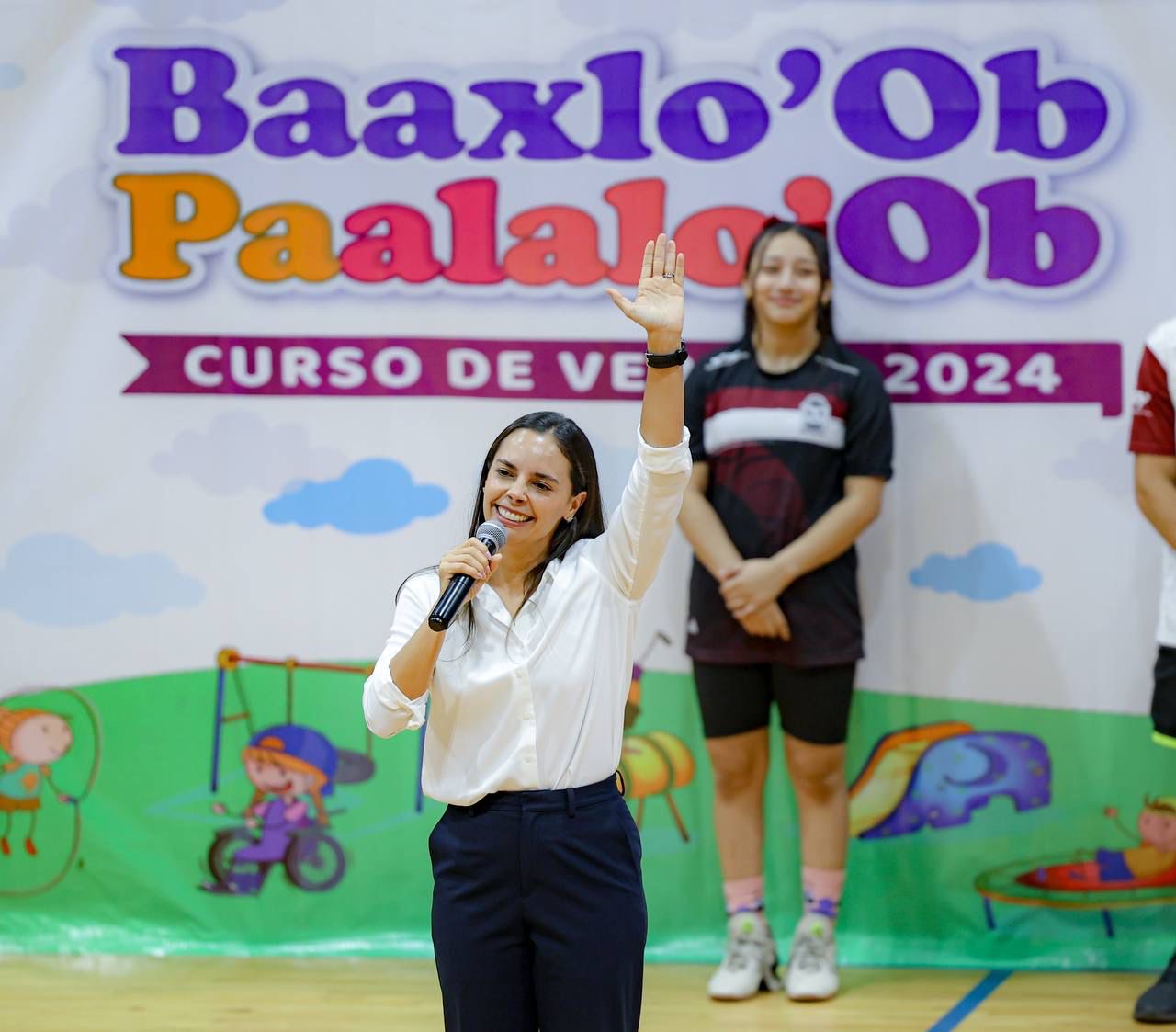 Cancún, Q. R., a 22 de julio de 2024.- Con el compromiso de promover en niños y jóvenes la salud y la activación física en Cancún, la Presidenta Municipal, Ana Paty Peralta, inauguró la XXIX Edición 2024 del curso de verano Baaxlo´ob Paalalo´Ob, a cargo del Instituto del Deporte (IMD), en el que 300 infantes disfrutarán de múltiples actividades deportivas y recreativas hasta el próximo 9 de agosto.