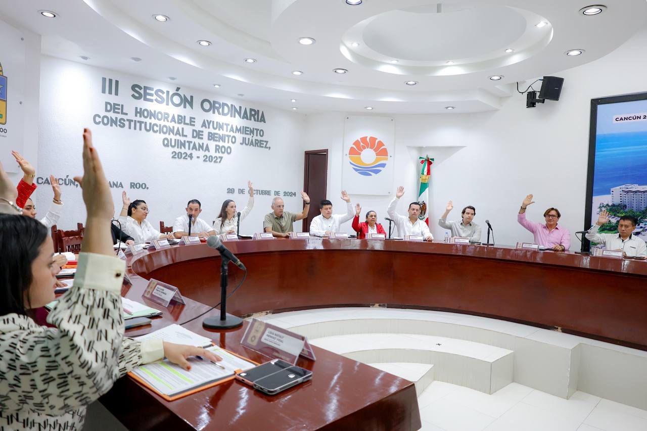 Cancún, 30 de octubre 2024/ En Cabildo, se aprobaron los integrantes del Ayuntamiento que pertenecerán al Comité Técnico del Fideicomiso de Administración y Pago de los recursos públicos que se generen por el concepto del Derecho de Saneamiento Ambiental