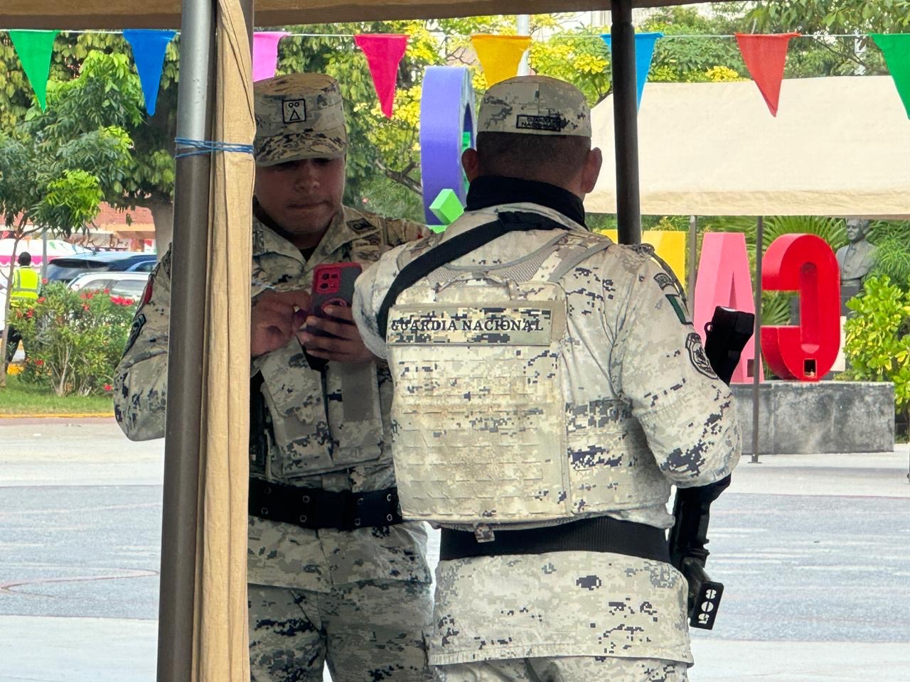 Cancún.- Autoridades de la Guardia Nacional y el Ejército Mexicano arribaron esta mañana al Palacio Municipal, en medio de un dispositivo de seguridad, para sostener una reunión con la presidenta municipal, Ana Paty Peralta de la Peña, previo al anuncio del cambio de mando de la Secretaría de Seguridad Ciudadana de este municipio.