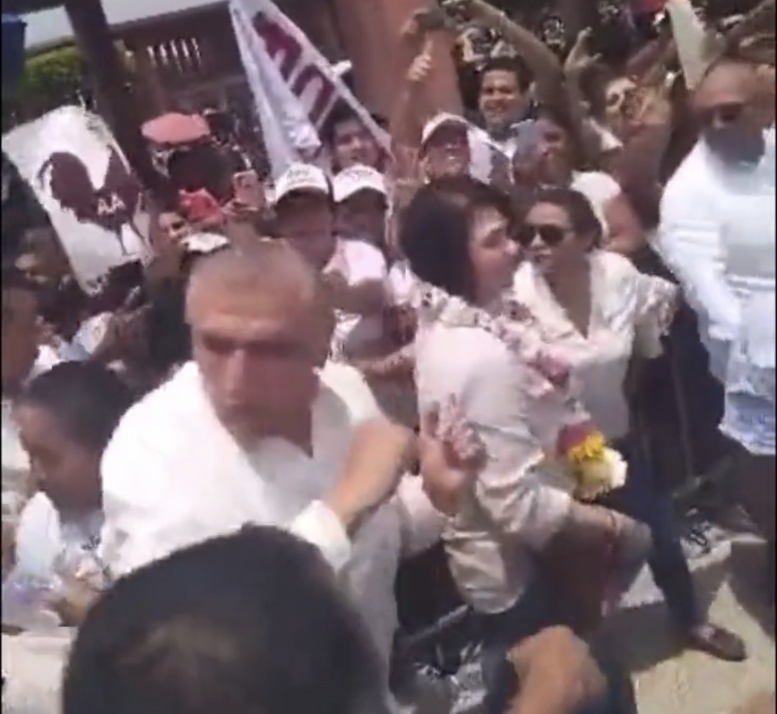 Así se ve en el video que circuló en redes sociales cuando caminaba junto a la multitud que se acercaba para hacerle alguna petición o simplemente saludarlo.