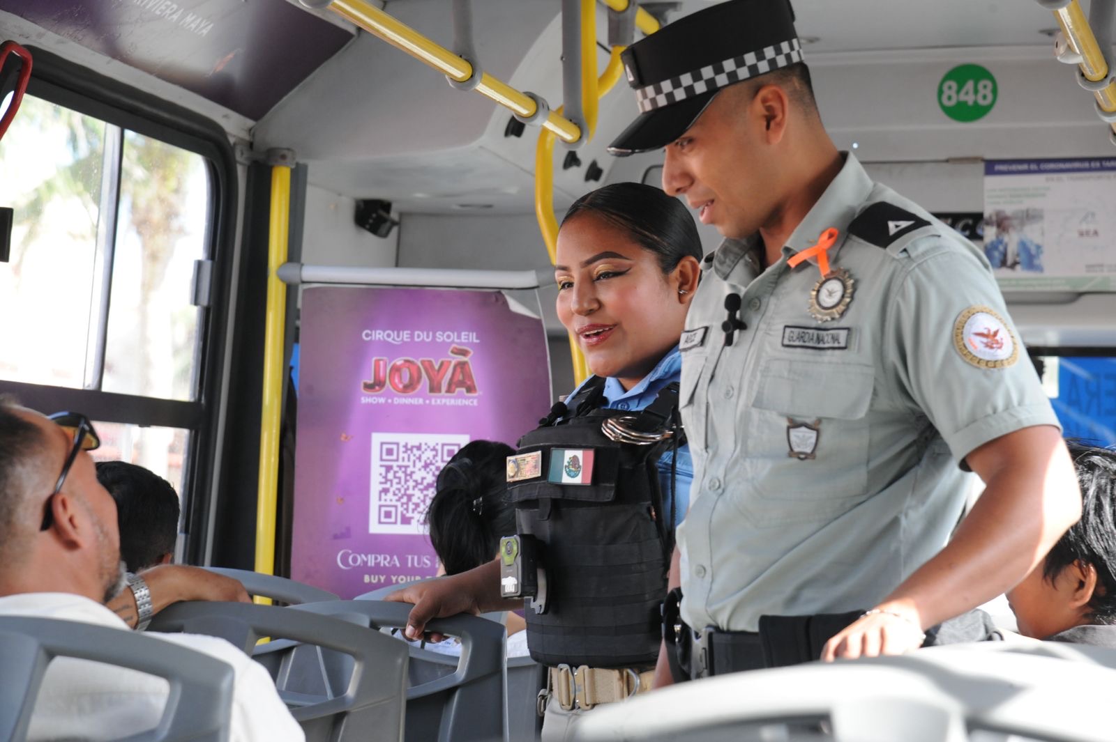Las acciones preventivas se realizan en la zona turística, donde a las unidades de transporte público se les marca el alto de forma aleatoria, siendo 869 ocasiones que se han abordado las unidades para proporcionar información a los pasajeros, además de reducir los delitos y faltas administrativas que se pudieran registrar en el transporte público.