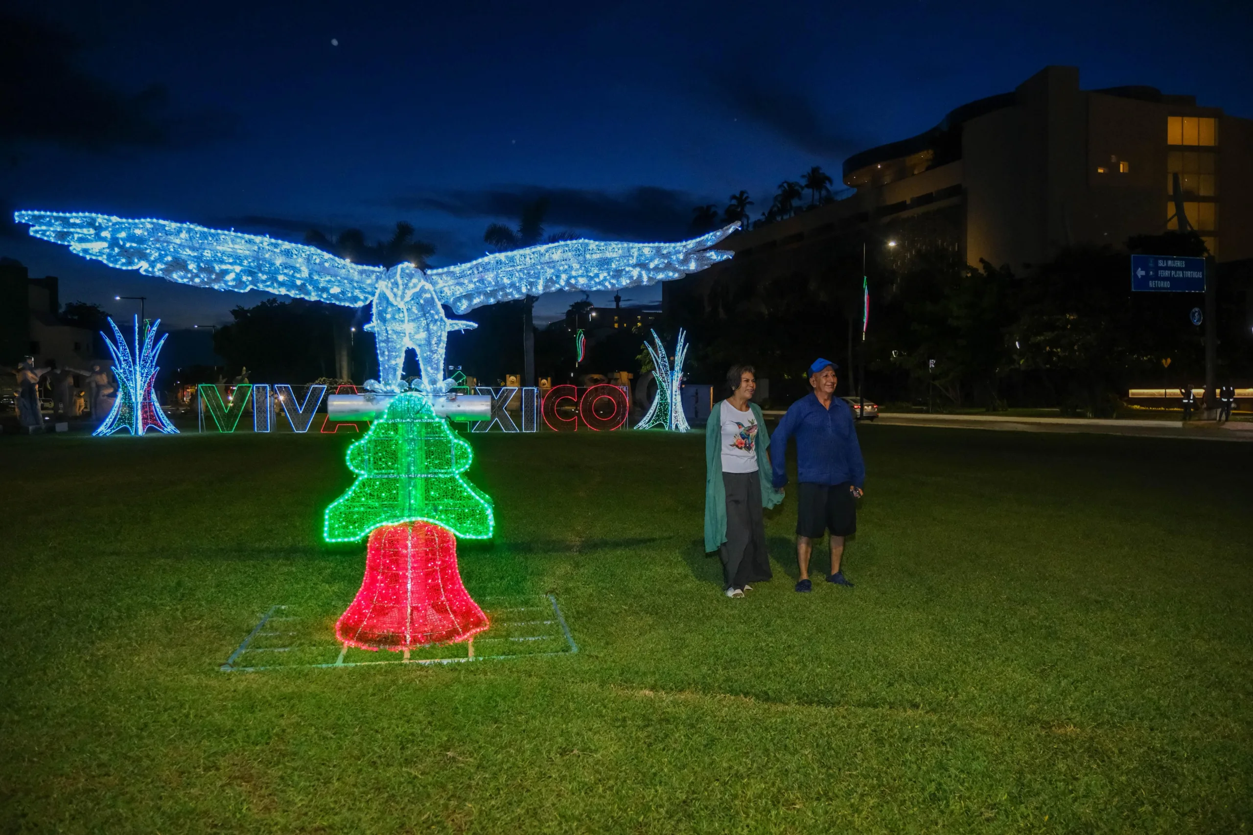 El Fideicomiso para el Fortalecimiento de la Actividad Turística de Quintana Roo instaló estructuras e iluminaciones alusivas al Mes Patrio en la Zona Hotelera, como parte del embellecimiento urbano