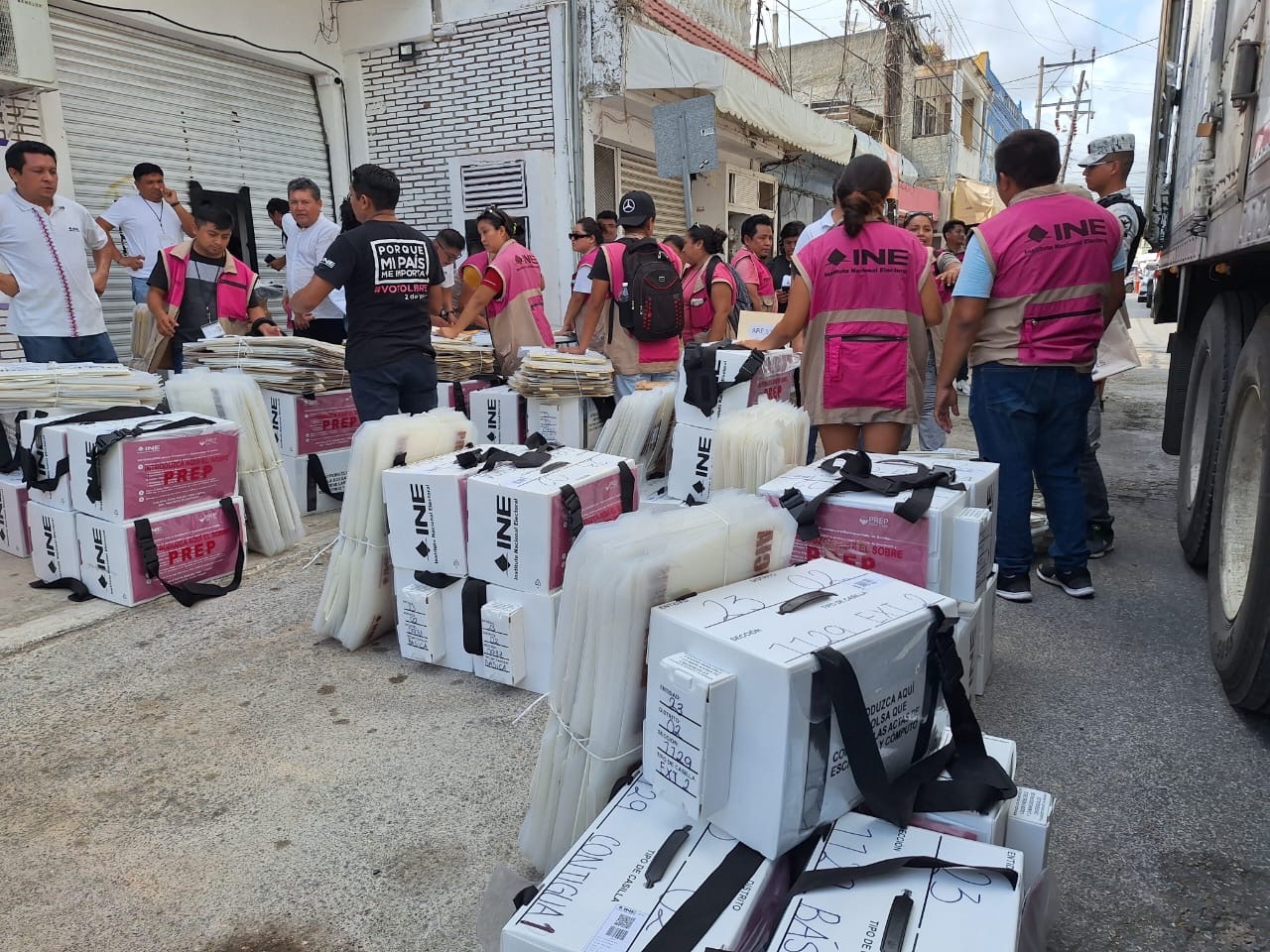 Previamente, el convoy con estos paquetes electorales estuvo en Felipe Carrillo Puerto, donde bajo un fuerte operativo de seguridad encabezado por la Guardia Nacional y la Marina, arribó a las instalaciones del Consejo Distrital 13, ubicado en colonia Cecilio Chi.