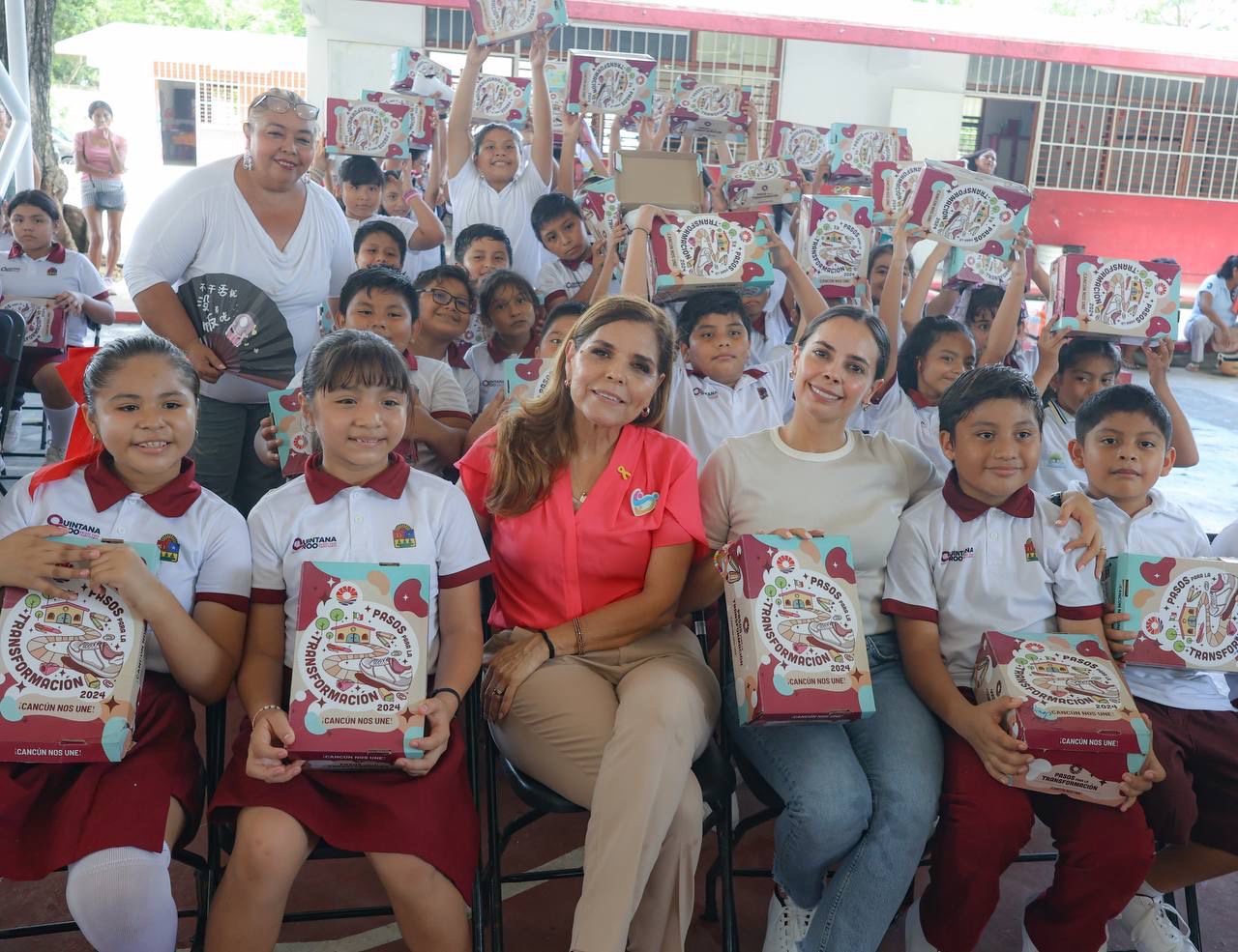Cancún, Q. R., a 05 de septiembre de 2024.- “Por primera vez, todos los estudiantes de educación especial, preescolar, primaria y secundaria de las 429 escuelas públicas de Cancún recibirán de manera gratuita un par de zapatos tenis, siendo 122 mil 525 pares”, subrayó la Presidenta Municipal de Benito Juárez, Ana Paty Peralta, en el arranque del programa “Pasos para la Transformación” que se realizó en la escuela primaria “La Corregidora” en la Supermanzana 228, con respaldo de la presidenta honoraria del Sistema DIF Quintana Roo, Verónica Lezama Espinosa, en representación de la Gobernadora Mara Lezama.