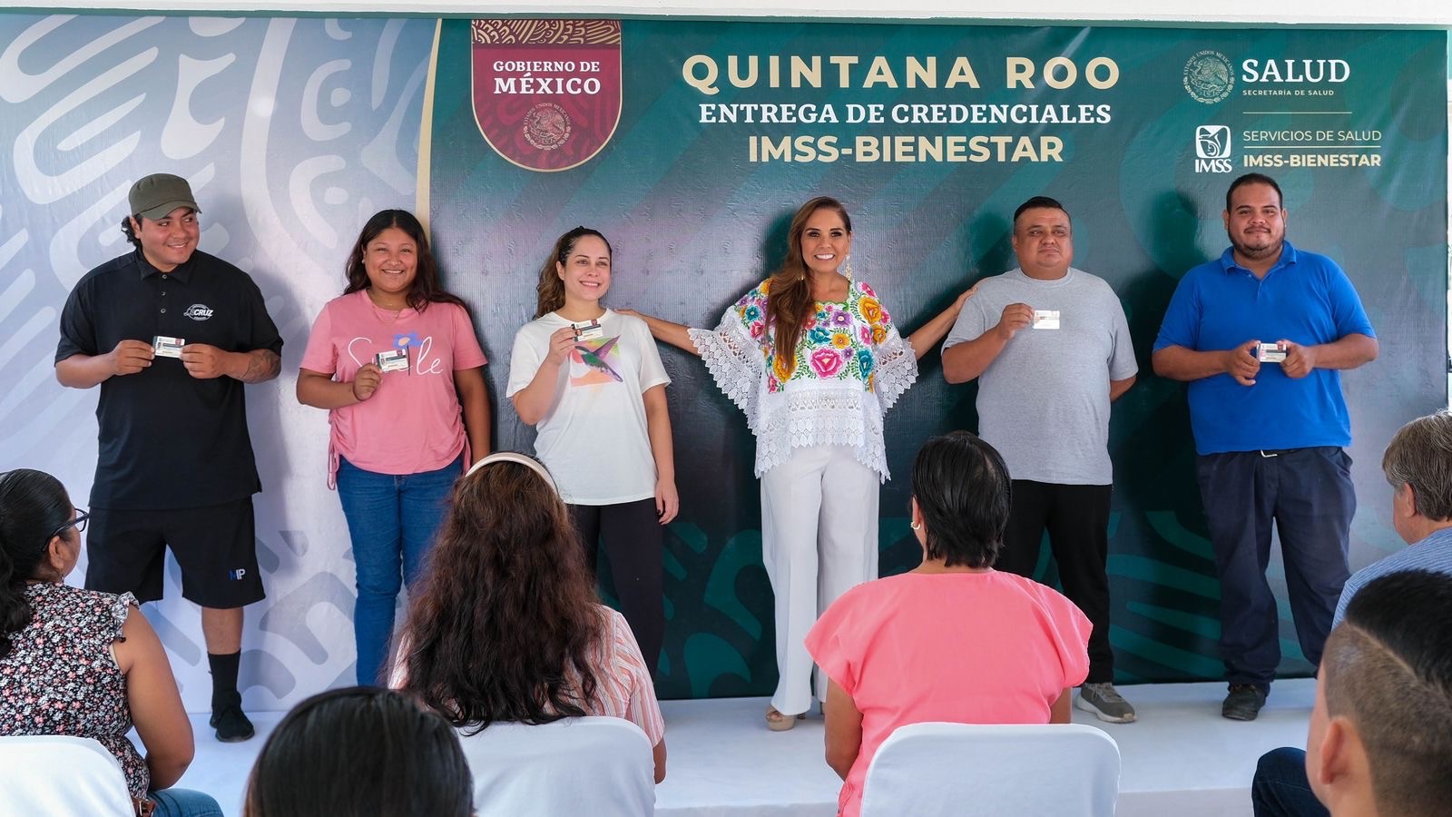La Gobernadora de Quintana Roo se enlazó, como lo hicieron gobernadoras y gobernadores de México, desde el Centro de Salud Urbano No. 6, en donde entregó las primeras tarjetas de 14 mil 059 personas que ya se afiliaron y son beneficiarios de este programa.