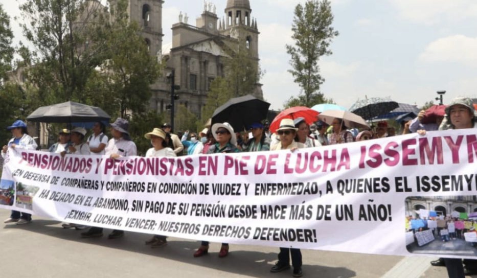 Jubilados del Instituto de Seguridad Social del Estado de México y Municipios (ISSEMyM) se manifestaron ayer para exigir al gobierno entrante una solución al problema que enfrentan, debido al retraso en el pago de sus pensiones, una situación que dejó pendiente la administración de Alfredo del Mazo.