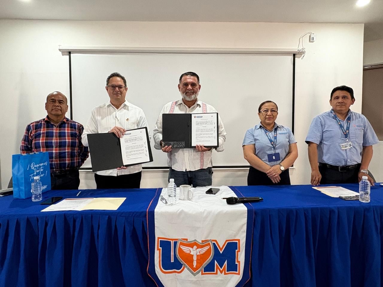 En el acto estuvieron presentes Lamberto Cruz, vicepresidente de práctica profesional del Colegio de Contadores; María de la Cruz Chan Alvarado, Vicerrectora de la universidad UNIMAAT y Miguel Ángel Abarca Castro-Coordinador académico de la licenciatura en Administración, finanzas y contaduría pública.