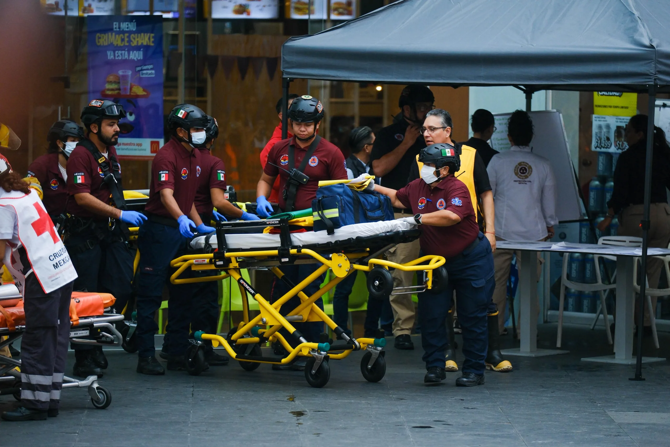 El ejercicio en Cancún, cuyo centro de mando fue encabezado por Mara Lezama, simuló la evacuación de la plaza comercial tras una explosión controlada, activando brigadas internas, cuerpos de emergencia y protocolos de rescate. A la 1:00 de la tarde se pactó se emitiera una alarma que puso en marcha brigadas de la plaza junto con bomberos, paramédicos de la Cruz Roja, Protección Civil, Seguridad Ciudadana y personal de emergencias médicas.
