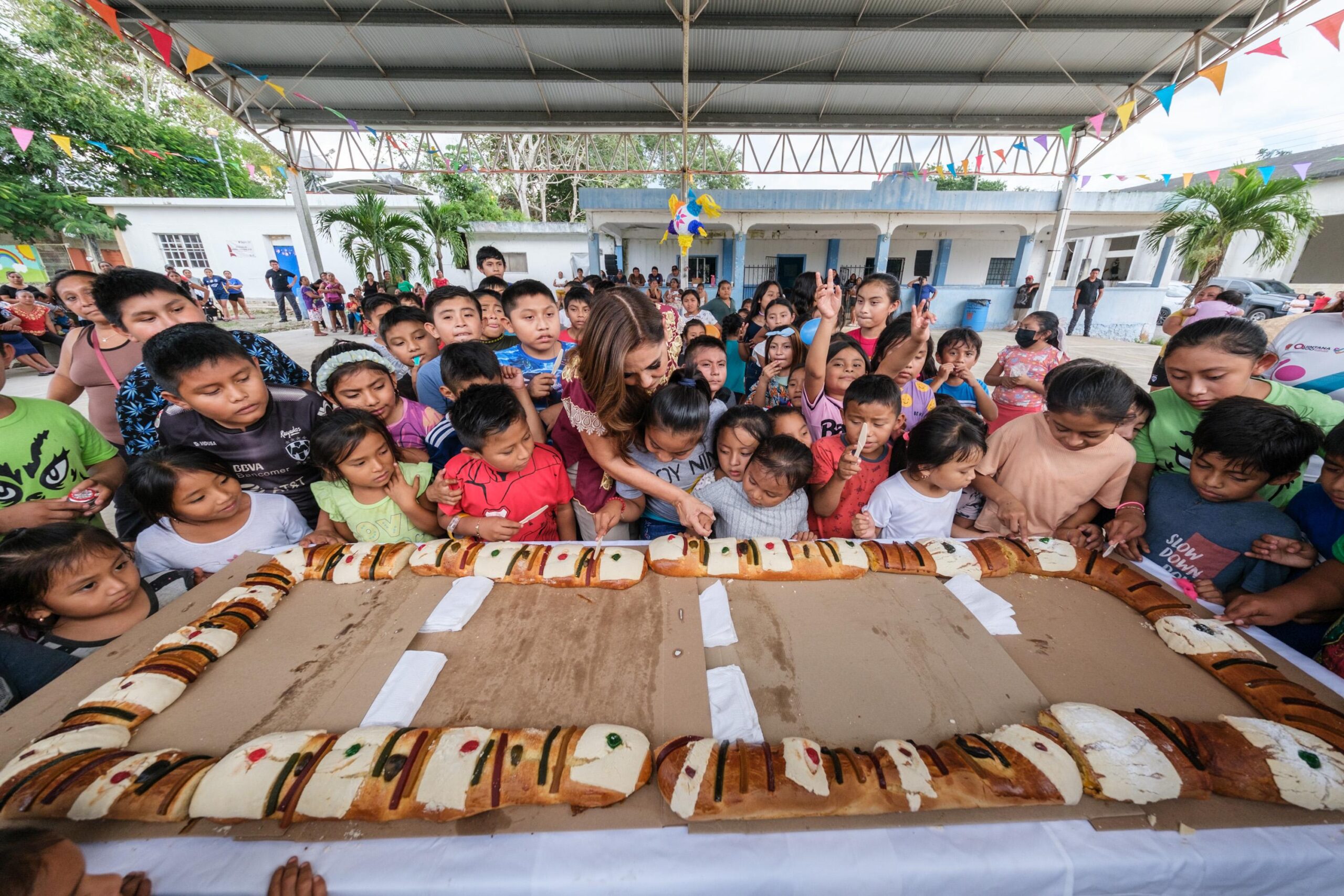 11 de enero 2025/ Lázaro Cárdenas.- En simultáneo, más de 20 mil niñas, niños y sus familias de 100 comunidades de Quintana Roo celebraron por primera vez las festividades de Día de Reyes y recibieron a los reyes magos en un ambiente festivo, con piñatas, rosca, juguetes y rifas, cerrando brechas de desigualdad y con oportunidades parejas para todas y todos.