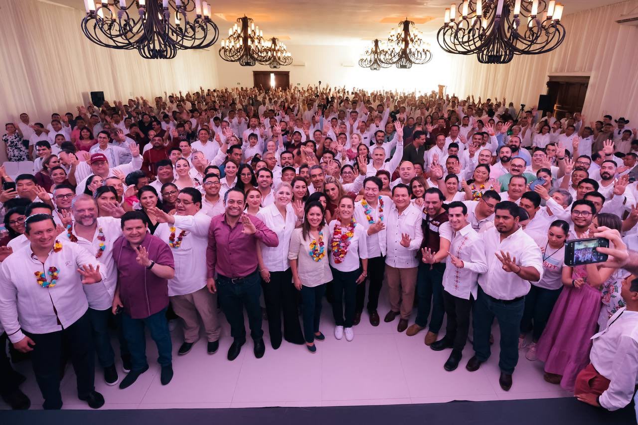 13 de octubre/ En su cuenta oficial de X, la virtual candidata de Morena por la presidencia en 2024, informó que se reunió con las dirigencias del partido, PT y el Partido Verde Ecologista, en Valladolid, Yucatán, previo a la firma del acuerdo Acuerdo de Unidad, donde les expresó que en la última encuesta telefónica del partido se ubicó a Morena en la preferencia de los yucatecos.