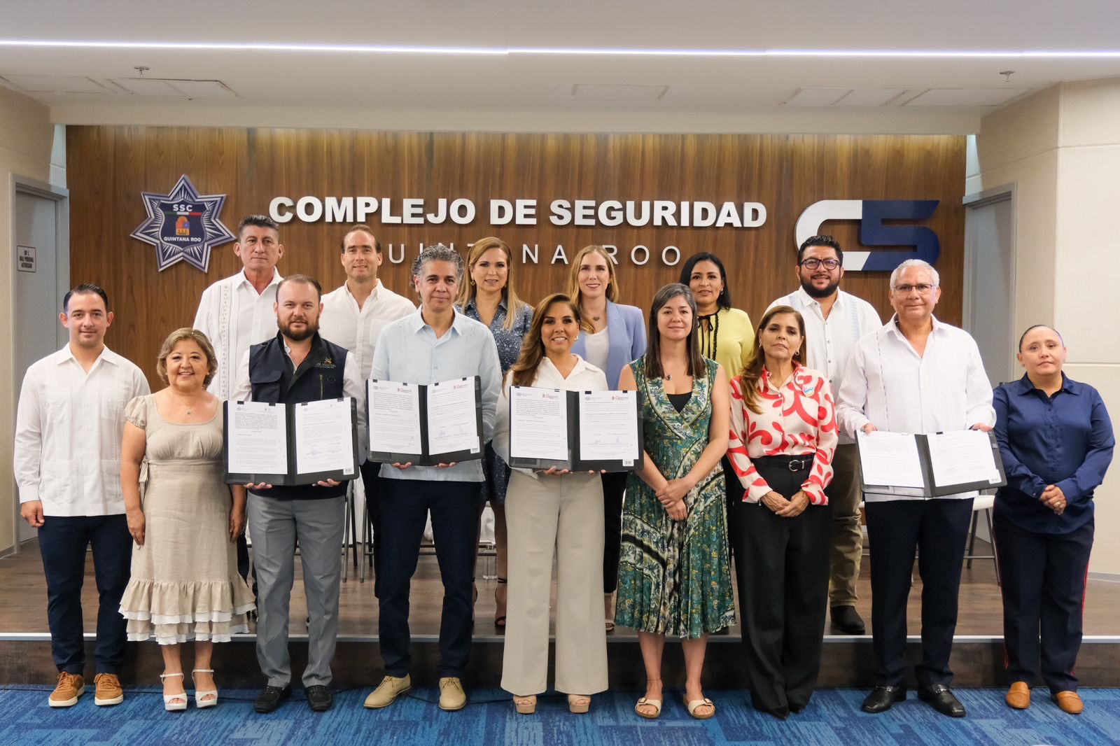 Atestiguaron esta firma en el Complejo de Seguridad C5, presidentes municipales, miembros de la sociedad civil, la presidenta honoraria del Sistema DIF Quintana Roo, Verónica Lezama Espinosa, y la secretaria de Gobierno, Cristina Torres Gómez.