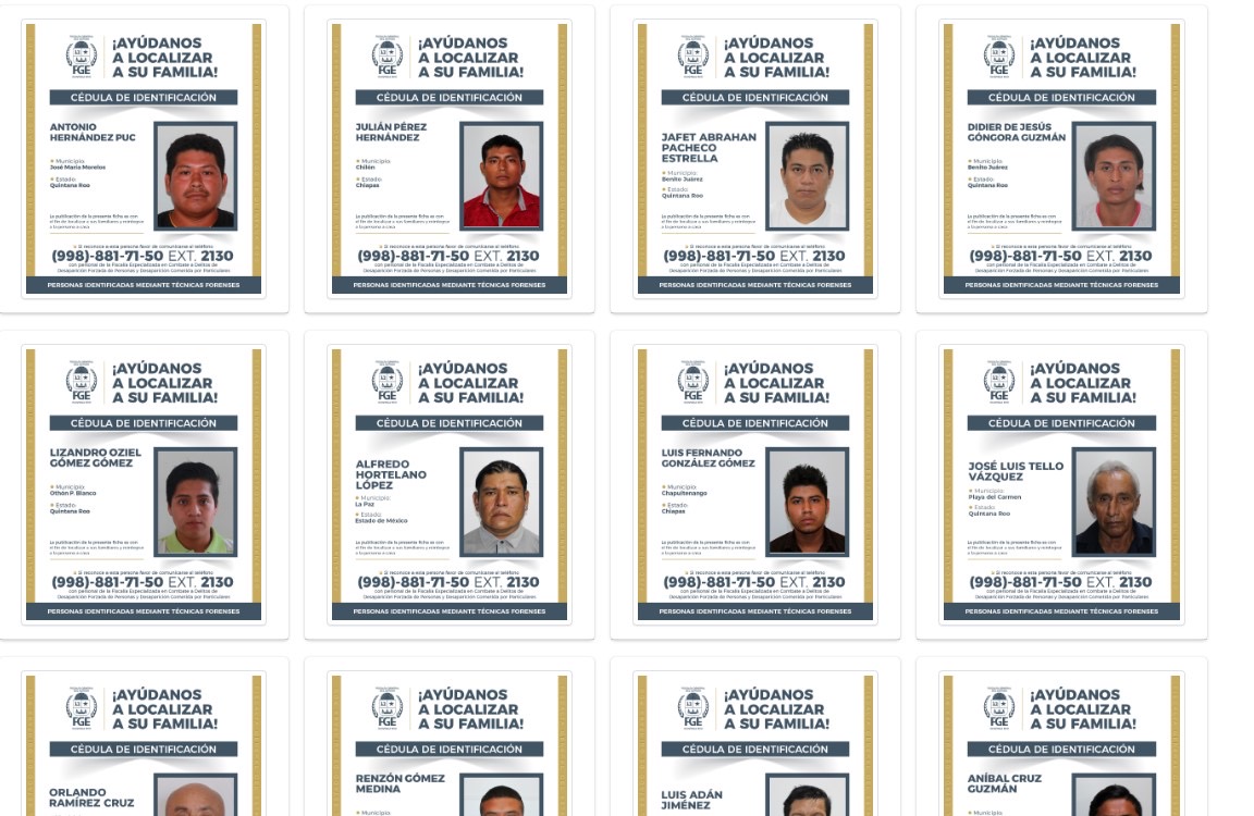Cancún, 30 de julio 2025.- La Fiscalía General del Estado publicó un micrositio de internet con los datos de 169 personas cuyos cuerpos han sido hallados, pero sin reclamar por algún familiar.