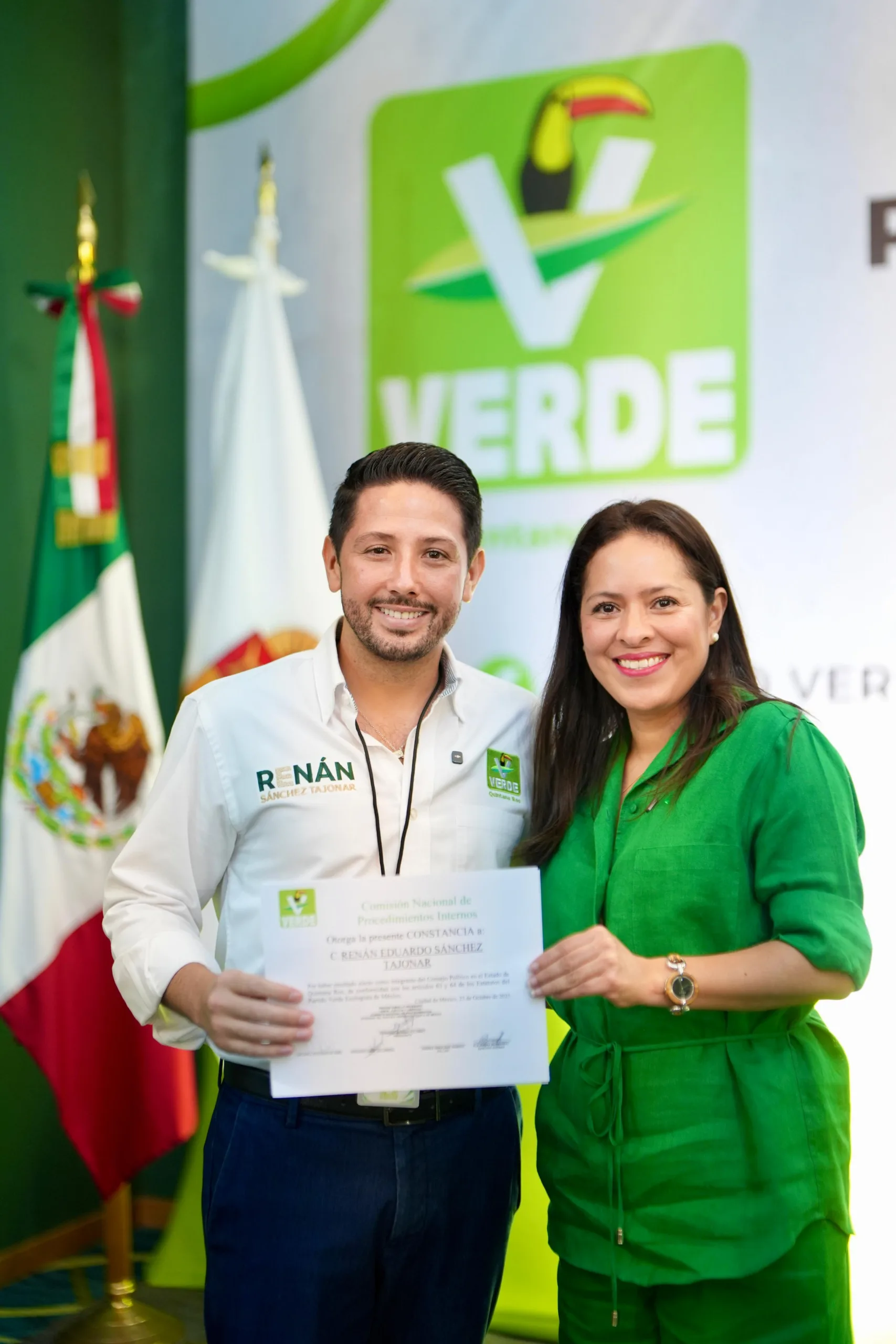 Por su parte, Renán Sánchez Tajonar agradeció la confianza y reafirmó su compromiso de seguir fortaleciendo al Partido Verde desde el territorio, con trabajo cercano a la gente y resultados que transformen la vida de las familias quintanarroenses.
