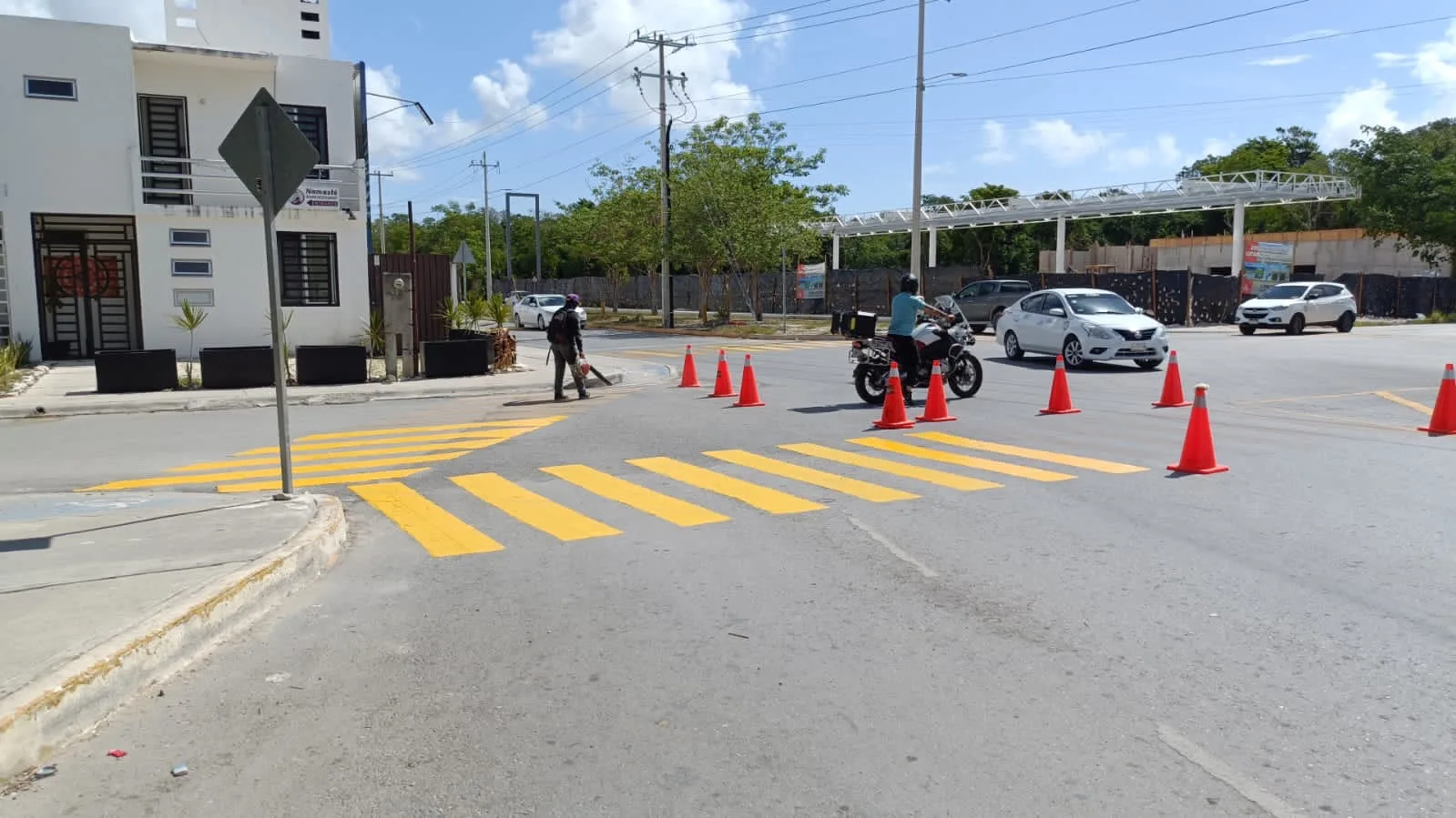 Puntualizó que, los cruces que fueron pintados en sus cuatro intersecciones fueron: Avenida delfín, Tlacuache, Joaquín Hendricks, Zaraguato, Turipache, Cocodrilo, Chaca, Caoba y Cedro. Se colocó pintura tráfico, industrial con cromo y de secado rápido, elaborada para resistir la abrasión y el tráfico vehicular.