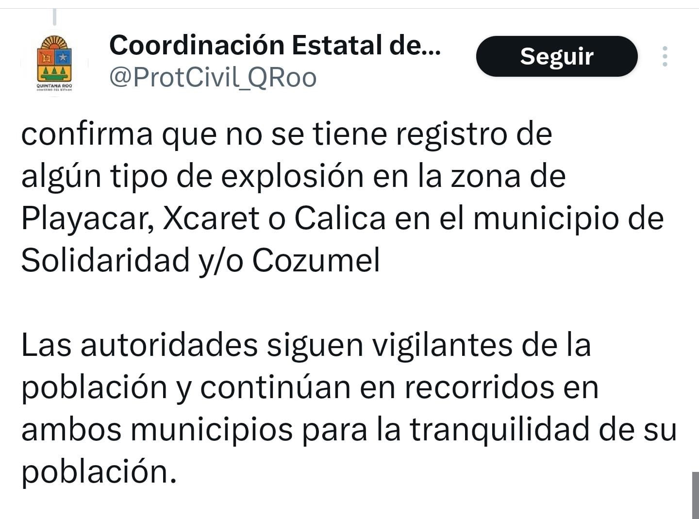 Fue a eso de las siete de la tarde que comenzaron los reportes en redes sociales y vía telefónica, sobre una supuesta explosión o bien un temblor, por parte de habitantes de Playacar.