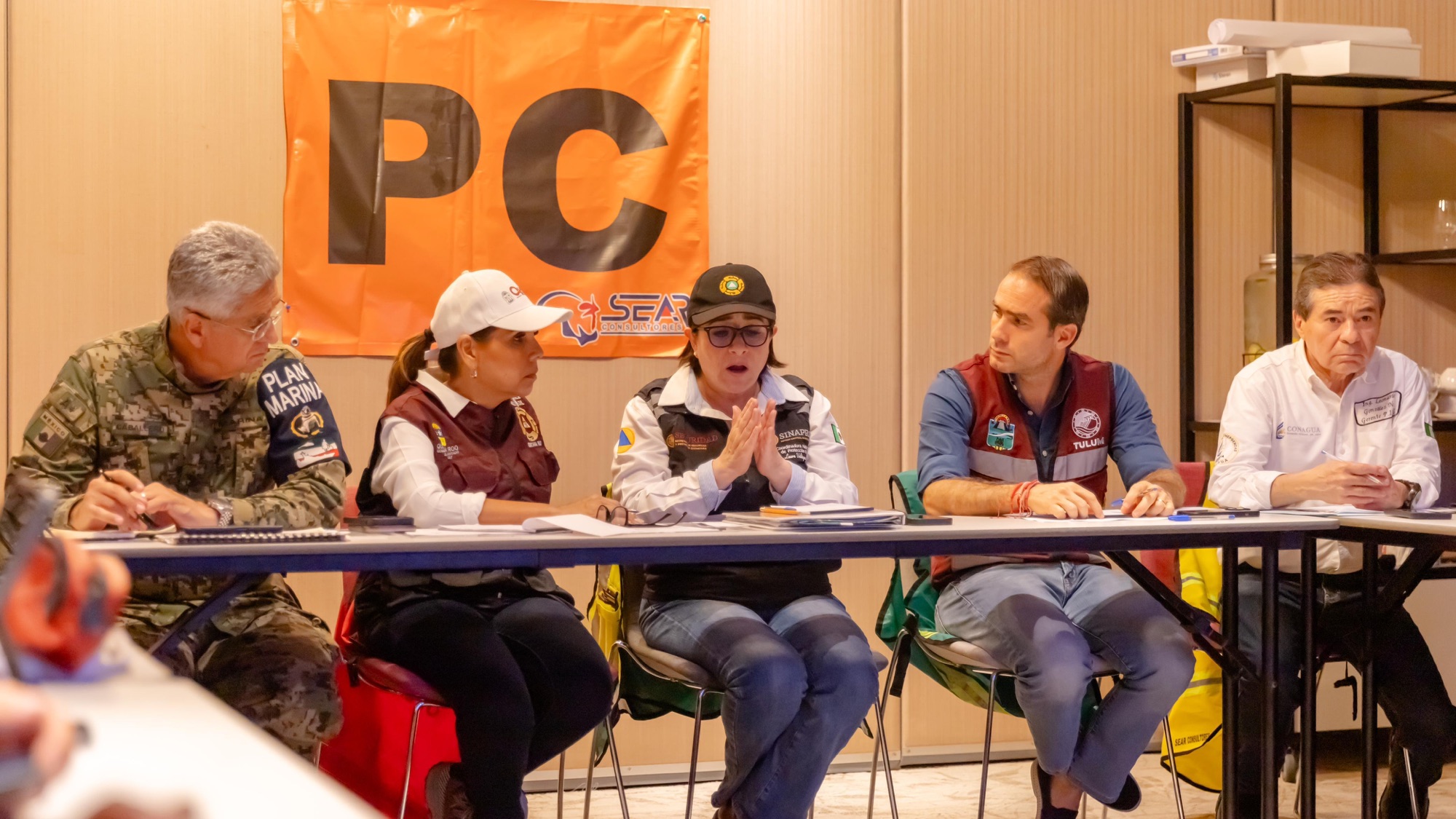 La coordinadora nacional de Protección Civil, Laura Velázquez Alzúa, la gobernadora, Mara Lezama, el Presidente Municipal, Diego Castañón Trejo, fijaron la estrategia de prevención y acción en el centro sur del estado, por la proximidad del huracán Beryl.