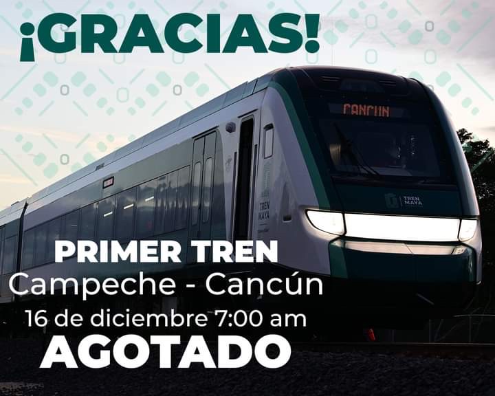 1 de diciembre 2023/ Cancún.- Los boletos del primer viaje del Tren Maya, que comprenderá la ruta San Francisco Campeche-Cancún, se agotaron a solo unos minutos que el gobierno federal anunciara su venta.