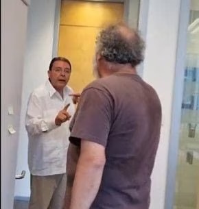 En la escena aparece el cónsul general Migue Ángel Isidro Rodríguez, quien cuestiona qué es lo que ocurre y al notar lo acalorado de la discusión, pide al cónsul adscrito que salga del lugar. (Infobae)