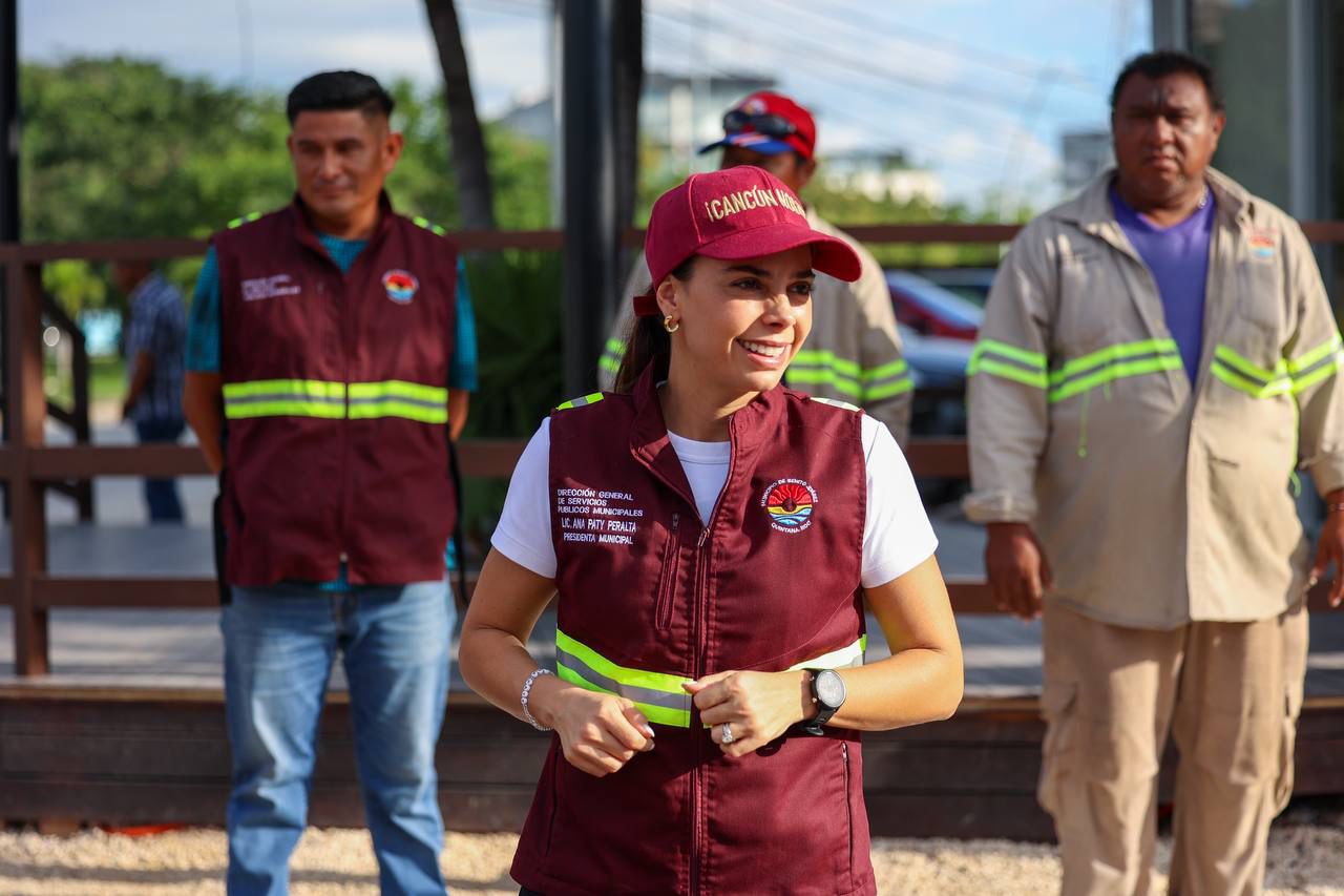 Desde su llegada, la Presidenta Municipal convivió con los trabajadores de Servicios Públicos, a quienes agradeció su trabajo permanente de atención para beneficio de los cancunenses, además de que constató el pozo y su interconexión para el correcto funcionamiento.