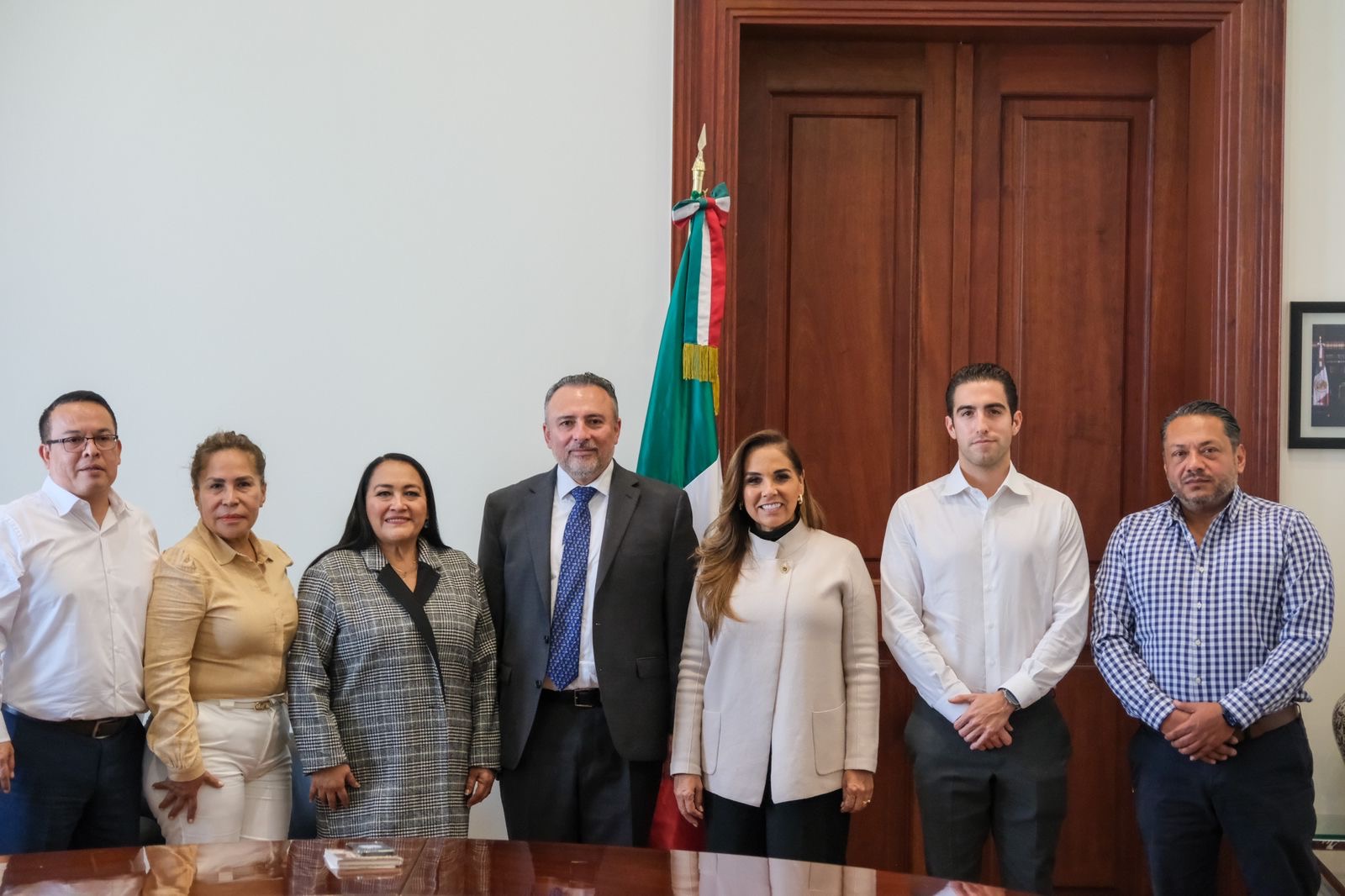 Durante la reunión de trabajo estuvo acompañada de la secretaria estatal de Educación, Elda Xix Euán; del encargado de Despacho del IFEQROO, Aldo Andrés Castro Jiménez; del secretario de Obras Públicas, José Rafael Lara Díaz; la secretaria de Finanzas y Planeación, Martha Parroquín Pérez, y el senador Eugenio Segura, trabajando en equipo.