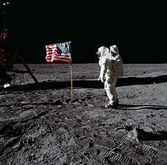 El módulo de exploración lunar «Eagle», componente de la nave Apolo XI, se posa con tres tripulantes a bordo sobre el satélite de la Tierra. Neil Armstrong pisa superficie lunar a las 22.56 hora de Houston, EE.UU. (02.56 GMT del 21 de julio). Poco después lo hace Edwin Aldrin, mientras que Michael Collins permanece en la nave. El comandante de la misión Neil Armstrong pronuncia su famosa frase: «Es un pequeño paso para un hombre, pero un gran salto para la humanidad.