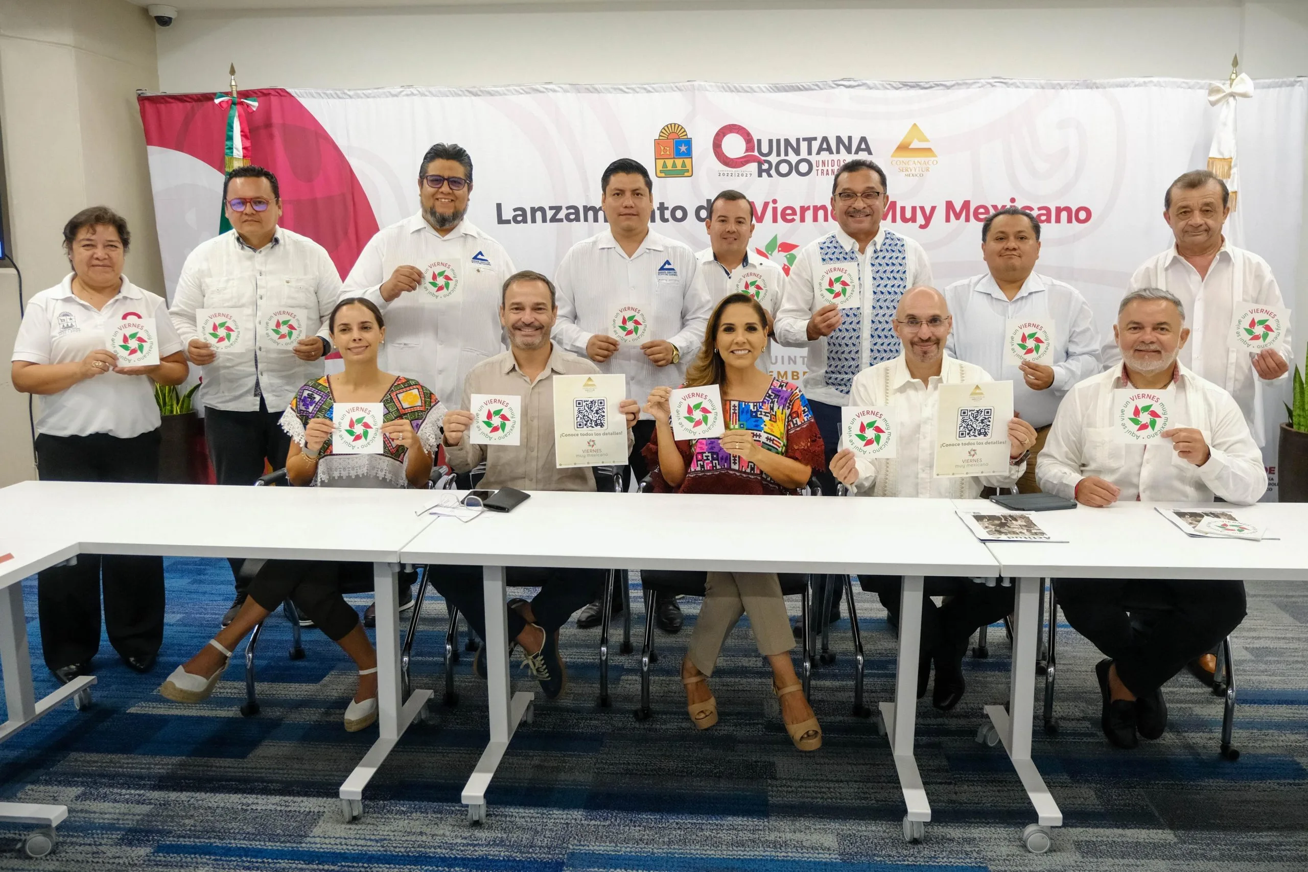 Cancún.- La gobernadora Mara Lezama Espinosa anunció el arranque del programa nacional en Quintana Roo “Viernes Muy Mexicano”, una iniciativa que se celebrará el próximo 26 de septiembre en todo el estado y que se replicará cada último viernes de mes, con el propósito de impulsar el consumo en negocios familiares y locales, apoyar al comercio formal y fomentar el orgullo por la cultura y tradiciones mexicanas.