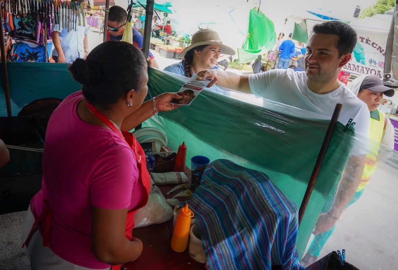 En su visita al Tianguis de la Región 221, Pablo Bustamante sigue llevando el mensaje de la Gobernadora Mara Lezama y el Nuevo Acuerdo impulsado por el primer gobierno humanista en Quintana Roo, así como los Programas del Bienestar